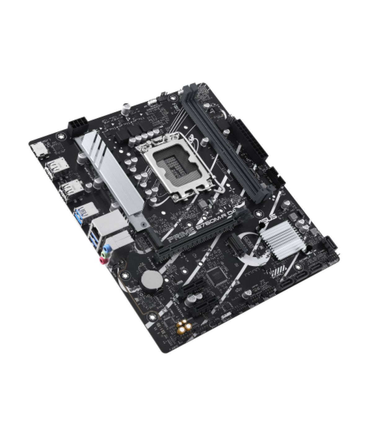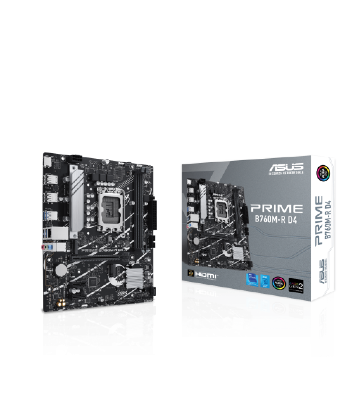 ASUS PRIME B760M-R D4. Fabricante de procesador: Intel, Socket de procesador: LGA 1700, Procesador compatible: Intel Core i9 14th Gen, Intel Core i3 12th Gen, Intel Core i3 13th Gen, Intel Core i5 12th Gen,.... tipos de memoria compatibles: DDR4-SDRAM, Memoria interna máxima: 64 GB, Tipo de ranuras de memoria: DIMM. Interfaces de disco de almacenamiento soportados: M.2, SATA III, Tipos de unidades de almacenamiento admitidas: HDD & SSD, Niveles RAID: 0, 1, 5, 10. Tipo de interfaz ethernet: 2.5 Gigabit Ethernet. Componente para: PC, Factor de forma: micro ATX, Familia del chipset: Intel
