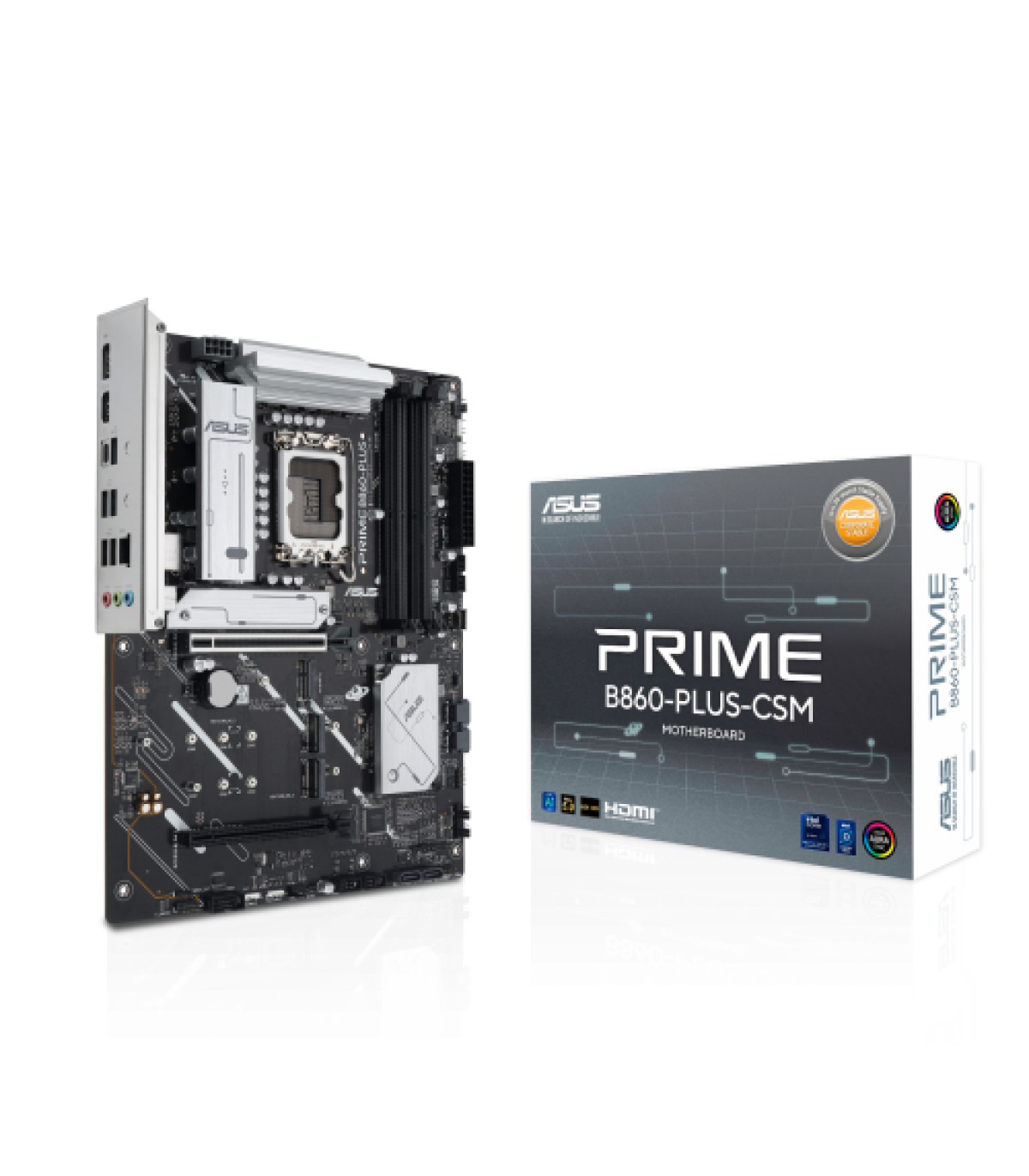 ASUS PRIME B860-PLUS-CSM. Fabricante de procesador: Intel, Socket de procesador: LGA 1851 (Socket V1), Procesador compatible: Intel Core Ultra (Series 2). tipos de memoria compatibles: DDR5-SDRAM, Memoria interna máxima: 256 GB, Tipo de ranuras de memoria: DIMM. Interfaces de disco de almacenamiento soportados: M.2, SATA III, Tipos de unidades de almacenamiento admitidas: HDD & SSD, Niveles RAID: 0, 1, 5, 10. Tipo de interfaz ethernet: 2.5 Gigabit Ethernet. Componente para: PC, Factor de forma: ATX, Familia del chipset: Intel