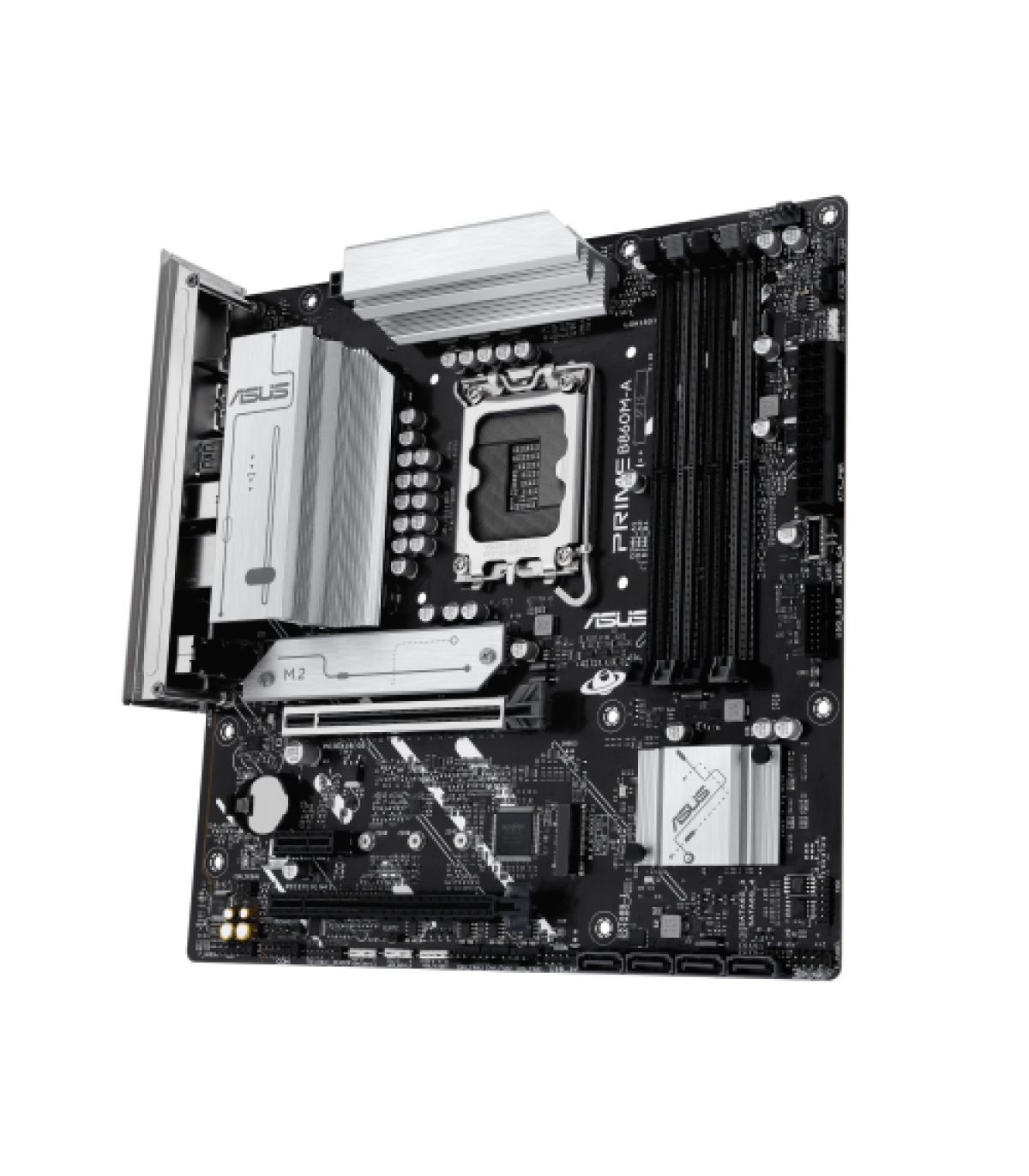 ASUS PRIME B860M-A-CSM. Fabricante de procesador: Intel, Socket de procesador: LGA 1851 (Socket V1), Procesador compatible: Intel Core Ultra (Series 2). tipos de memoria compatibles: DDR5-SDRAM, Memoria interna máxima: 256 GB, Tipo de ranuras de memoria: DIMM. Interfaces de disco de almacenamiento soportados: M.2, SATA III, Tipos de unidades de almacenamiento admitidas: HDD & SSD, Niveles RAID: 0, 1, 5, 10. Tipo de interfaz ethernet: 2.5 Gigabit Ethernet. Componente para: PC, Factor de forma: micro ATX, Familia del chipset: Intel