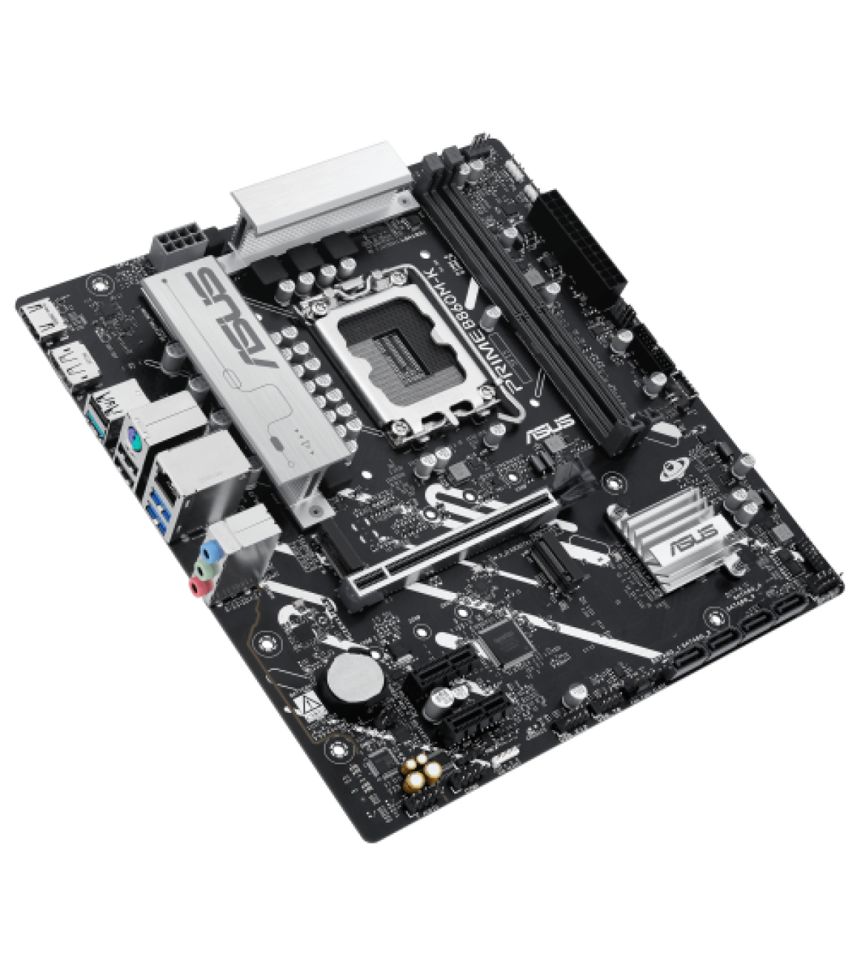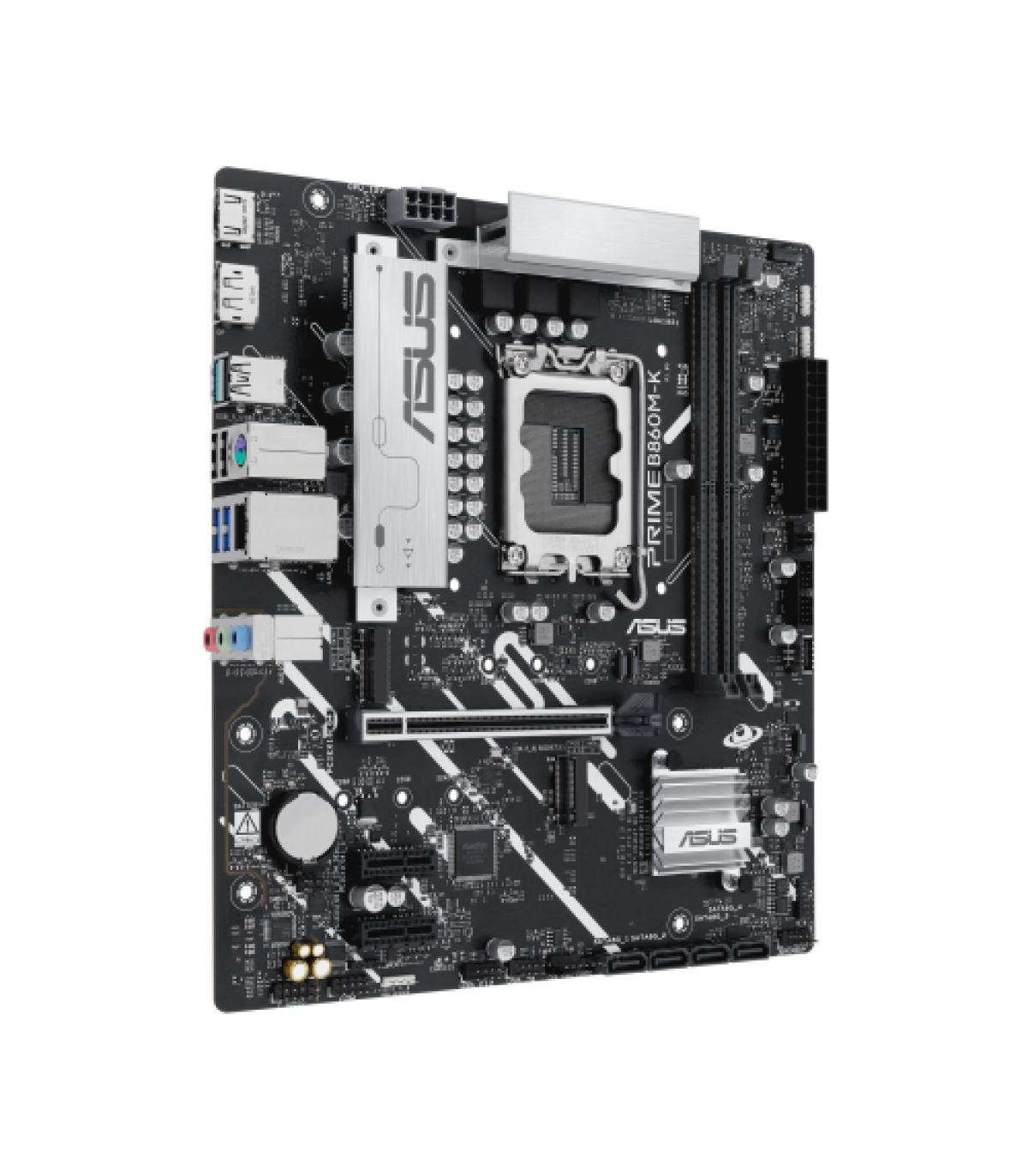 ASUS PRIME B860M-K. Fabricante de procesador: Intel, Socket de procesador: LGA 1851 (Socket V1), Procesador compatible: Intel Core Ultra (Series 2). tipos de memoria compatibles: DDR5-SDRAM, Memoria interna máxima: 128 GB, Tipo de ranuras de memoria: DIMM. Interfaces de disco de almacenamiento soportados: M.2, SATA III, Tipos de unidades de almacenamiento admitidas: HDD & SSD, Niveles RAID: 0, 1, 5, 10. Tipo de interfaz ethernet: 2.5 Gigabit Ethernet. Componente para: PC, Factor de forma: micro ATX, Familia del chipset: Intel