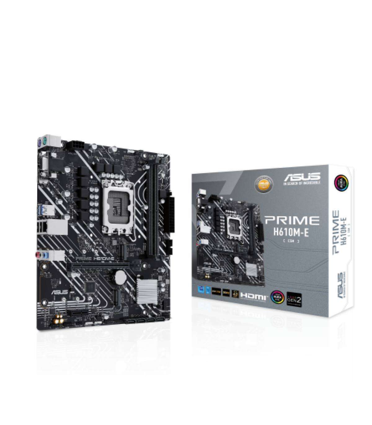 ASUS PRIME H610M-E-CSM. Fabricante de procesador: Intel, Socket de procesador: LGA 1700, Procesador compatible: Intel® Celeron®, Intel® Core™ i3, Intel® Core™ i5, Intel® Core™ i7, Intel® Core™ i9,.... tipos de memoria compatibles: DDR5-SDRAM, Memoria interna máxima: 96 GB, Tipo de ranuras de memoria: DIMM. Interfaces de disco de almacenamiento soportados: M.2, SATA III, Tipos de unidades de almacenamiento admitidas: HDD & SSD. Tipo de interfaz ethernet: Gigabit Ethernet. Componente para: PC, Factor de forma: micro ATX, Familia del chipset: Intel