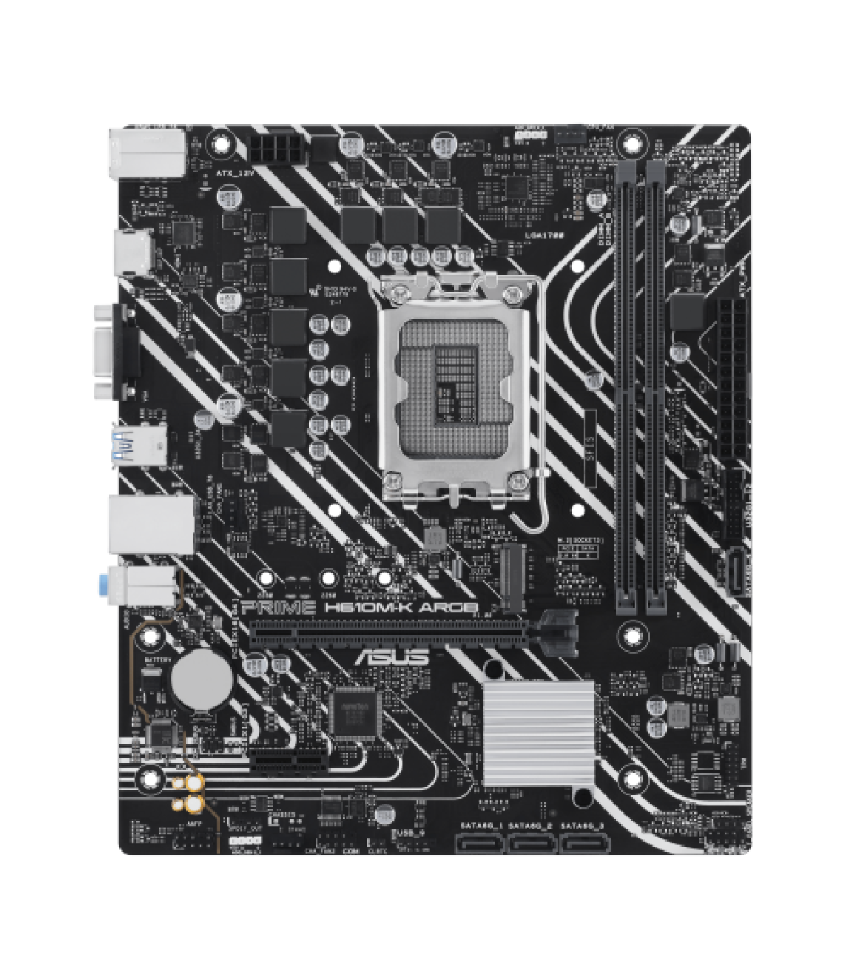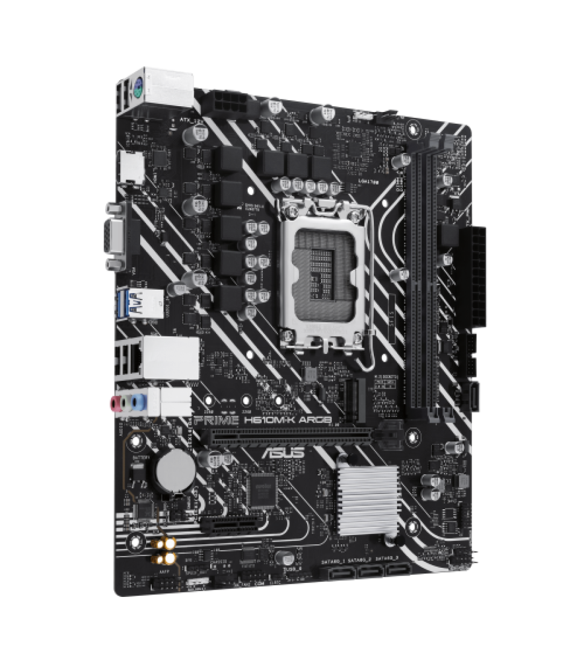 ASUS PRIME H610M-K ARGB. Fabricante de procesador: Intel, Socket de procesador: LGA 1700, Procesador compatible: Intel® Celeron®, Intel® Core™ i3, Intel® Core™ i5, Intel® Core™ i7, Intel® Core™ i9,.... tipos de memoria compatibles: DDR4-SDRAM, Memoria interna máxima: 96 GB, Tipo de ranuras de memoria: DIMM. Interfaces de disco de almacenamiento soportados: M.2, SATA, Tipos de unidades de almacenamiento admitidas: HDD & SSD. Tipo de interfaz ethernet: Gigabit Ethernet. Componente para: PC, Factor de forma: micro ATX, Familia del chipset: Intel