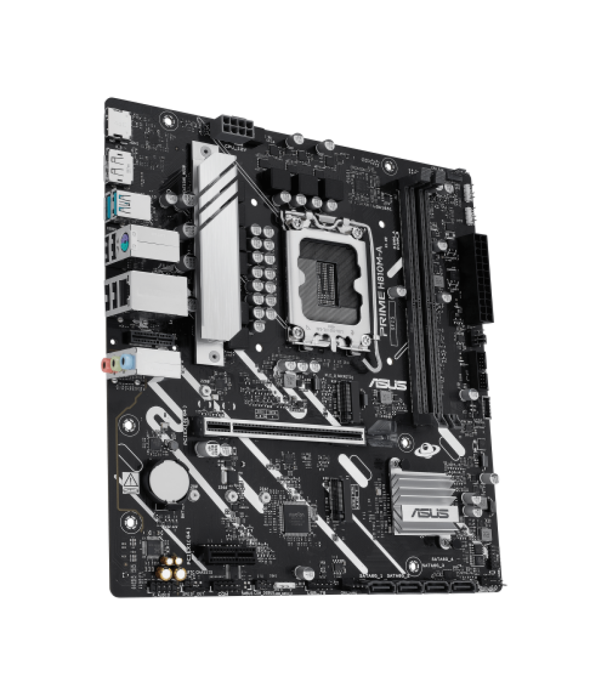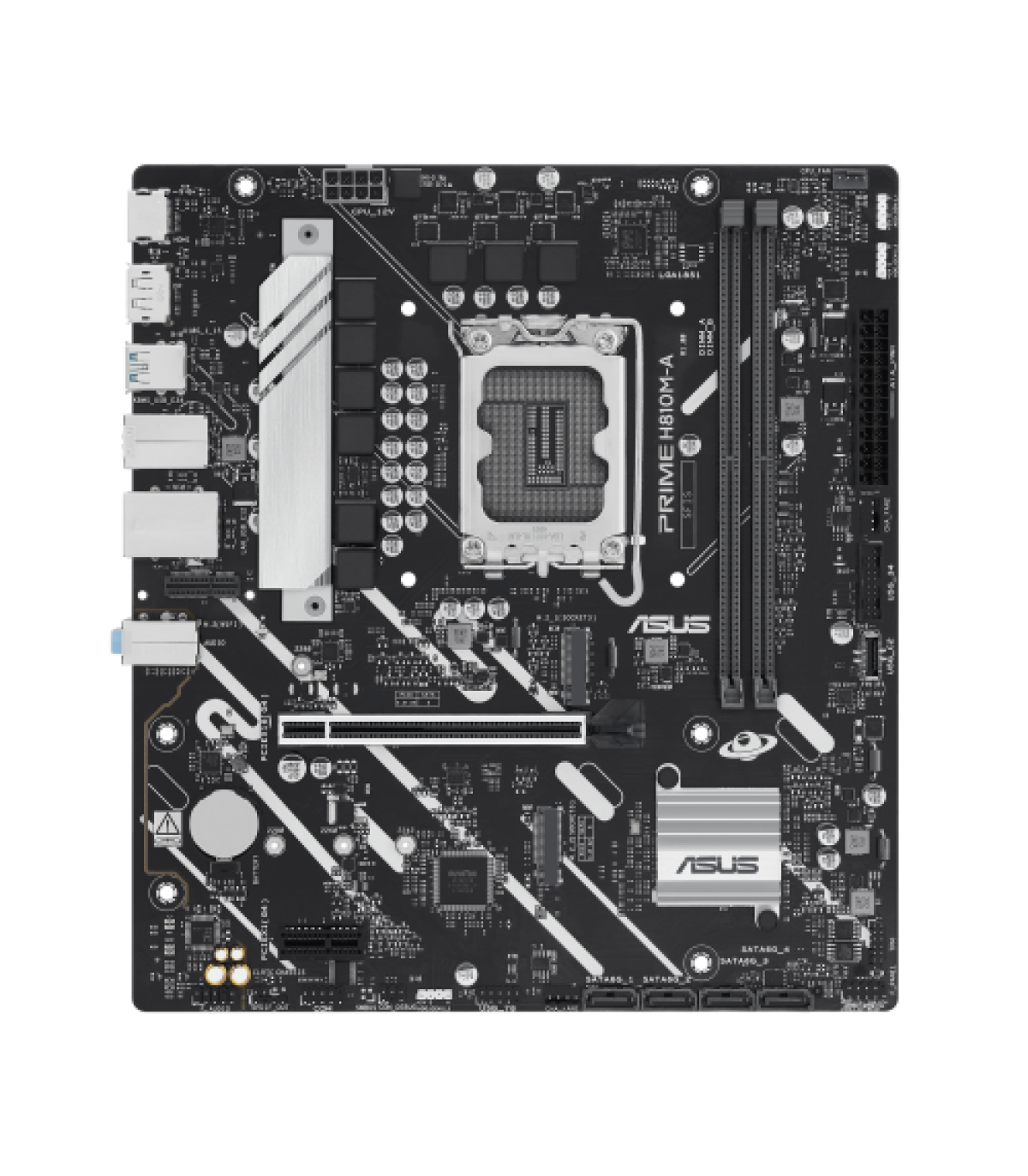 ASUS PRIME H810M-A-CSM. Fabricante de procesador: Intel, Socket de procesador: LGA 1851 (Socket V1), Procesador compatible: Intel Core Ultra (Series 2). tipos de memoria compatibles: DDR5-SDRAM, Memoria interna máxima: 128 GB, Tipo de ranuras de memoria: DIMM. Interfaces de disco de almacenamiento soportados: M.2, PCI Express 4.0, SATA III, Tipos de unidades de almacenamiento admitidas: HDD & SSD. Tipo de interfaz ethernet: Gigabit Ethernet, Controlador LAN: Intel I219V. Componente para: PC, Factor de forma: micro ATX, Familia del chipset: Intel