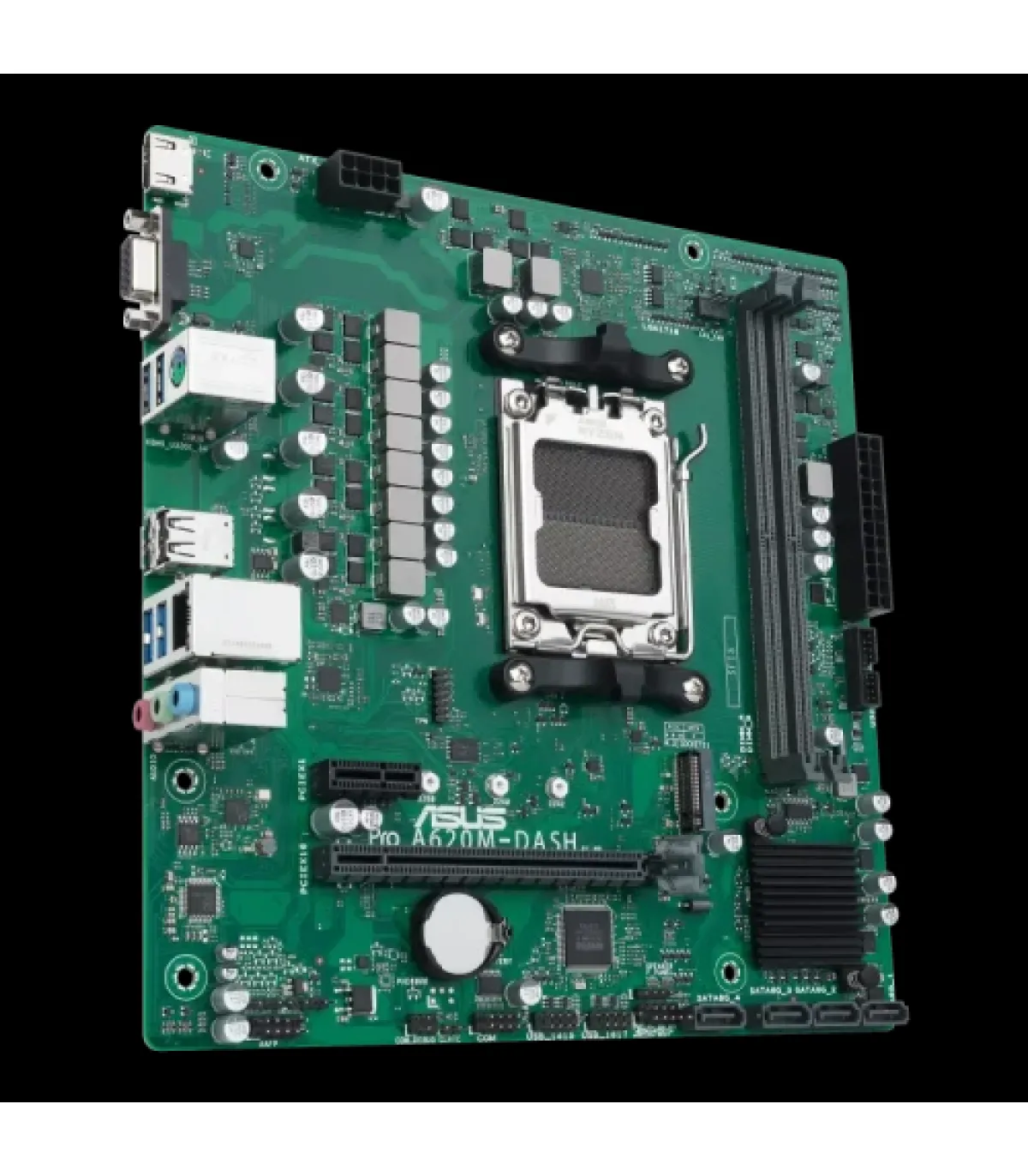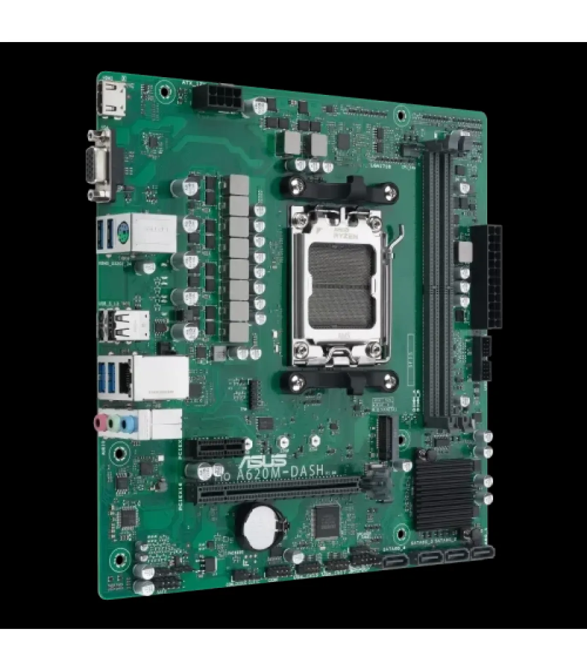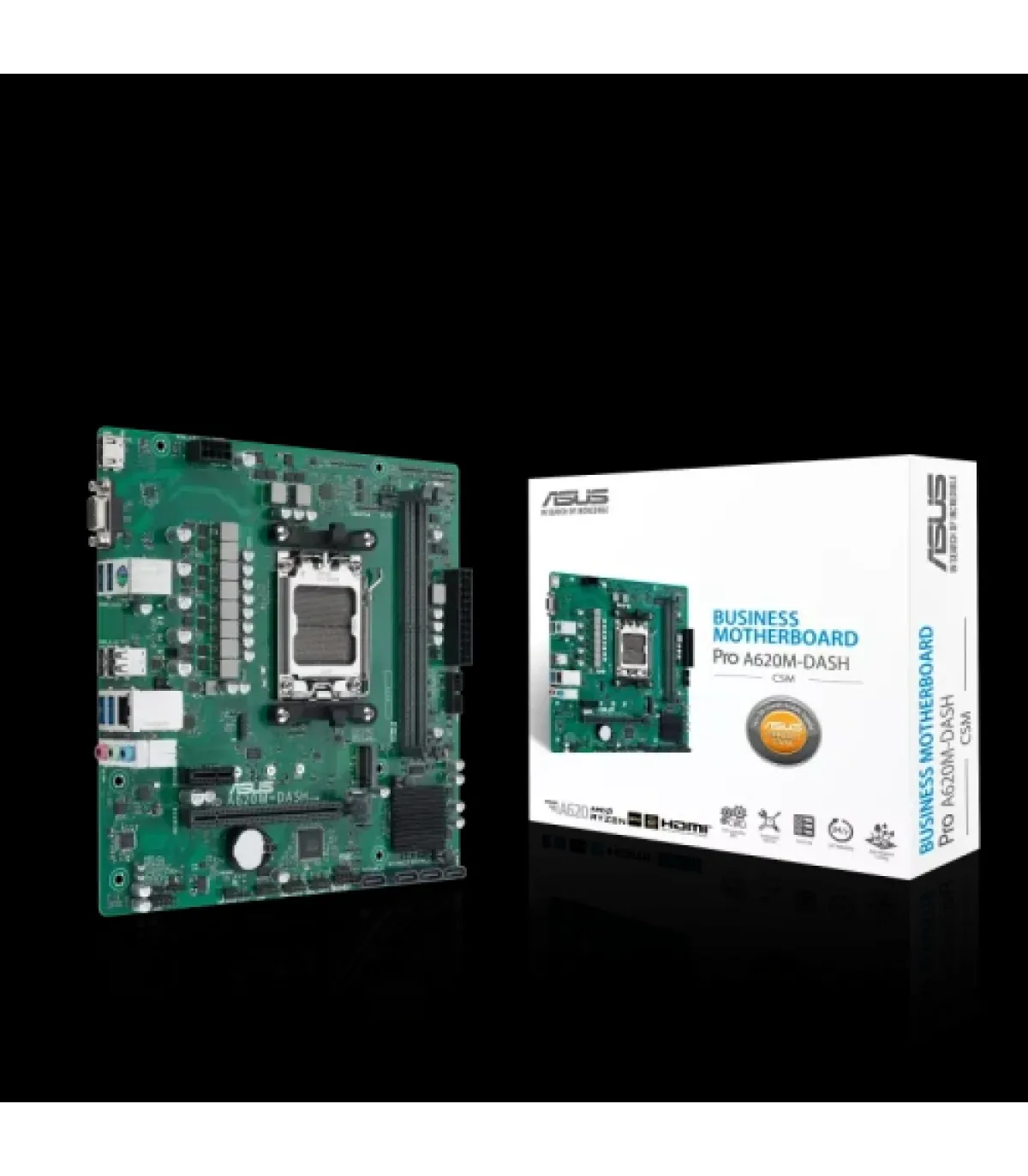 ASUS PRO A620M-DASH-CSM. Fabricante de procesador: AMD, Socket de procesador: Zócalo AM5, Sockets de procesador soportados: Zócalo AM5. tipos de memoria compatibles: DDR5-SDRAM, Memoria interna máxima: 96 GB, Tipo de ranuras de memoria: DIMM. Interfaces de disco de almacenamiento soportados: M.2, SATA III, Tipos de unidades de almacenamiento admitidas: HDD & SSD. Tipo de interfaz ethernet: Gigabit Ethernet, Controlador LAN: Realtek 8111EPV. Componente para: PC, Factor de forma: micro ATX, Familia del chipset: AMD