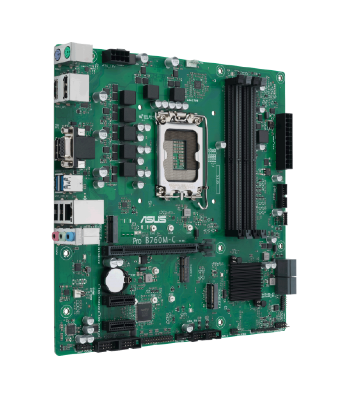 ASUS PRO B760M-C-CSM. Fabricante de procesador: Intel, Socket de procesador: LGA 1700, Procesador compatible: Intel® Celeron®, Intel® Core™ i3, Intel® Core™ i5, Intel® Core™ i7, Intel® Core™ i9,.... tipos de memoria compatibles: DDR5-SDRAM, Memoria interna máxima: 128 GB, Tipo de ranuras de memoria: DIMM. Interfaces de disco de almacenamiento soportados: M.2, SATA III, Tipos de unidades de almacenamiento admitidas: HDD & SSD, Niveles RAID: 0, 1, 5, 10. Tipo de interfaz ethernet: Gigabit Ethernet. Componente para: PC, Factor de forma: micro ATX, Familia del chipset: Intel