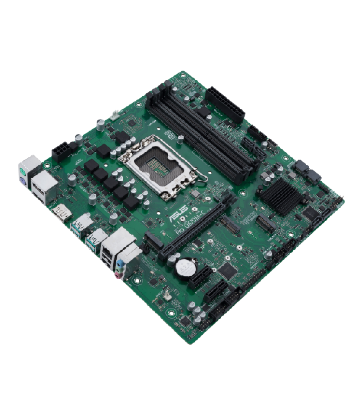 ASUS PRO Q670M-C-CSM. Fabricante de procesador: Intel, Socket de procesador: LGA 1700, Procesador compatible: Intel® Celeron®, Intel® Core™ i3, Intel® Core™ i5, Intel® Core™ i7, Intel® Core™ i9,.... tipos de memoria compatibles: DDR5-SDRAM, Memoria interna máxima: 128 GB, Tipo de ranuras de memoria: DIMM. Interfaces de disco de almacenamiento soportados: M.2, SATA III, Tipos de unidades de almacenamiento admitidas: HDD & SSD, Niveles RAID: 0, 1, 5, 10. Tipo de interfaz ethernet: Gigabit Ethernet. Componente para: PC, Factor de forma: micro ATX, Familia del chipset: Intel