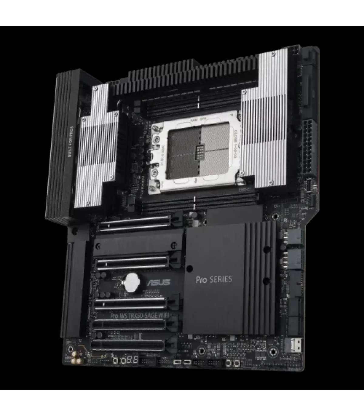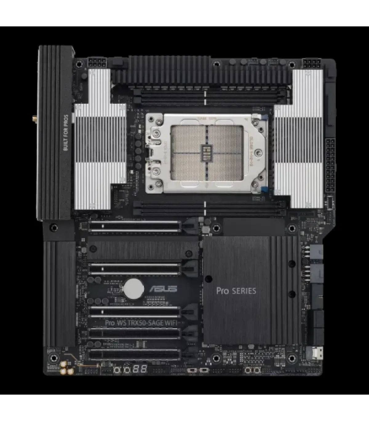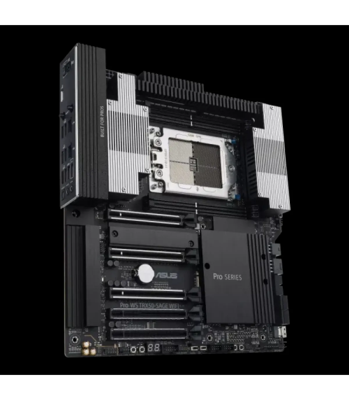 ASUS Pro WS TRX50-SAGE WIFI. Fabricante de procesador: AMD, Socket de procesador: Socket sTR5, Procesador compatible: AMD Ryzen™ Threadripper™. tipos de memoria compatibles: DDR5-SDRAM, Tipo de ranuras de memoria: DIMM, Canales de memoria: Cuatro canales. Interfaces de disco de almacenamiento soportados: M.2, SATA III, Tipos de unidades de almacenamiento admitidas: HDD & SSD, Niveles RAID: 0, 1, 5, 10. Conector USB: USB tipo A, USB Tipo C. Tipo de interfaz ethernet: 2.5 Gigabit Ethernet, 10 Gigabit Ethernet, Controlador LAN: Intel I226-LM, Estándar Wi-Fi: Wi-Fi 7 (802.11be)