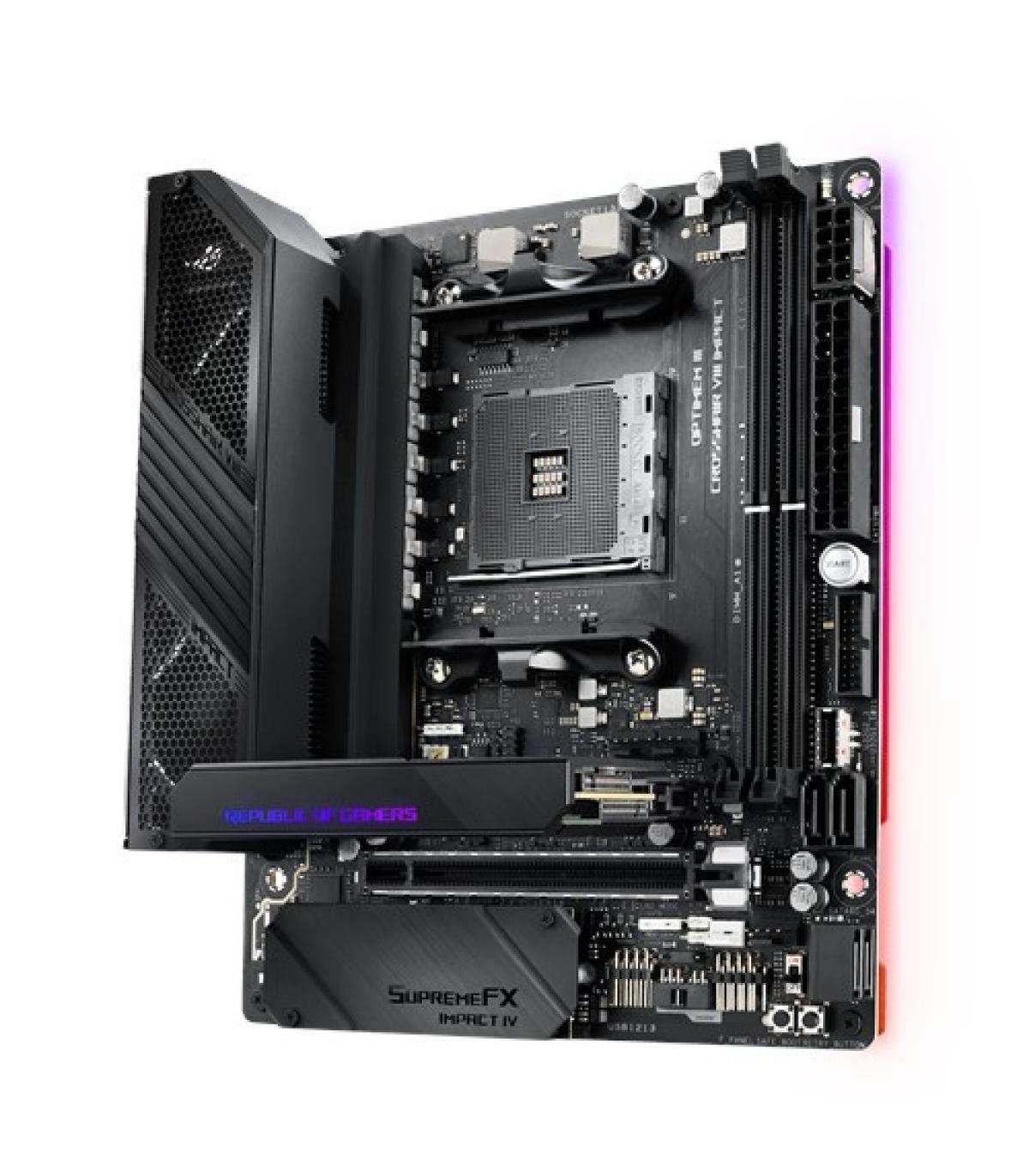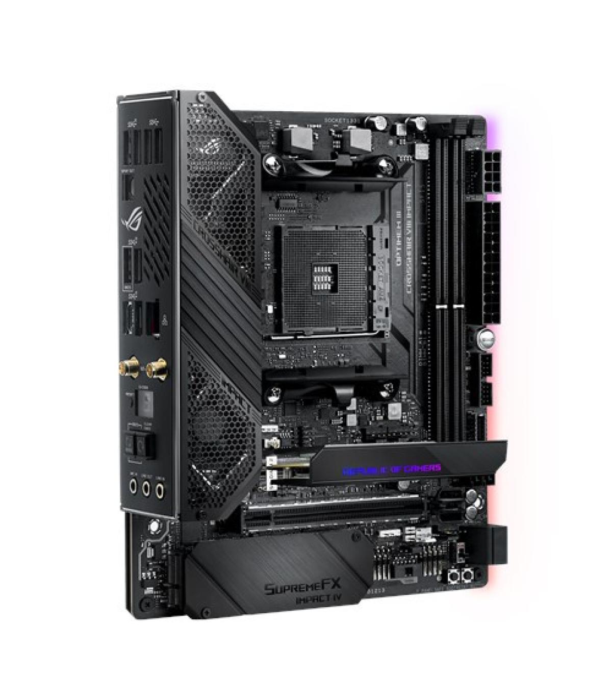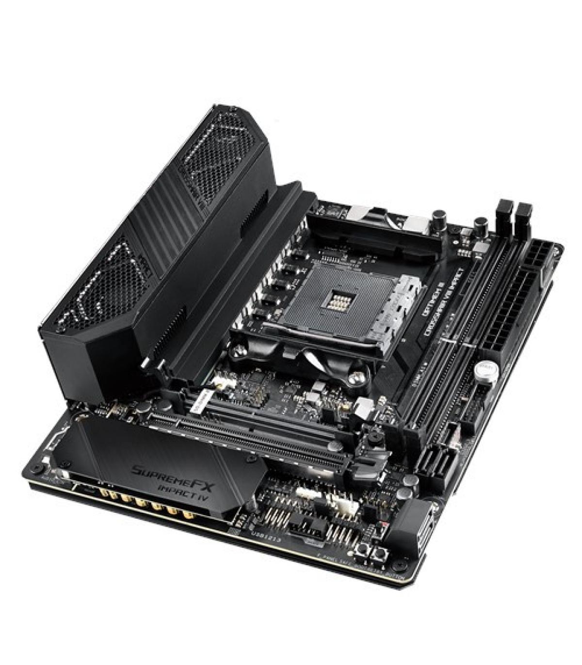 ASUS ROG Crosshair VIII Impact. Fabricante de procesador: AMD, Socket de procesador: Zócalo AM4, Procesador compatible: 2nd Generation AMD Ryzen™ 3, 3rd Generation AMD Ryzen™ 3, 2nd Generation AMD Ryzen™ 5, 3rd.... tipos de memoria compatibles: DDR4-SDRAM, Memoria interna máxima: 64 GB, Tipo de ranuras de memoria: DIMM. Interfaces de disco de almacenamiento soportados: SATA III, Tipos de unidades de almacenamiento admitidas: HDD & SSD, Niveles RAID: 0, 1, 10. Tipo de interfaz ethernet: 10 Gigabit Ethernet, Ethernet rápido, Gigabit Ethernet, Controlador LAN: Intel® I211-AT, Wi-Fi estándares: 802.11a, 802.11b, 802.11g, Wi-Fi 4 (802.11n), Wi-Fi 5 (802.11ac). Componente para: mini PC, Factor de forma: Mini DTX, Familia del chipset: AMD