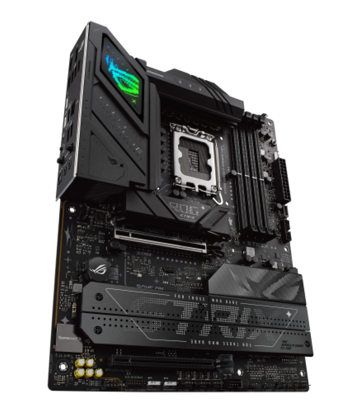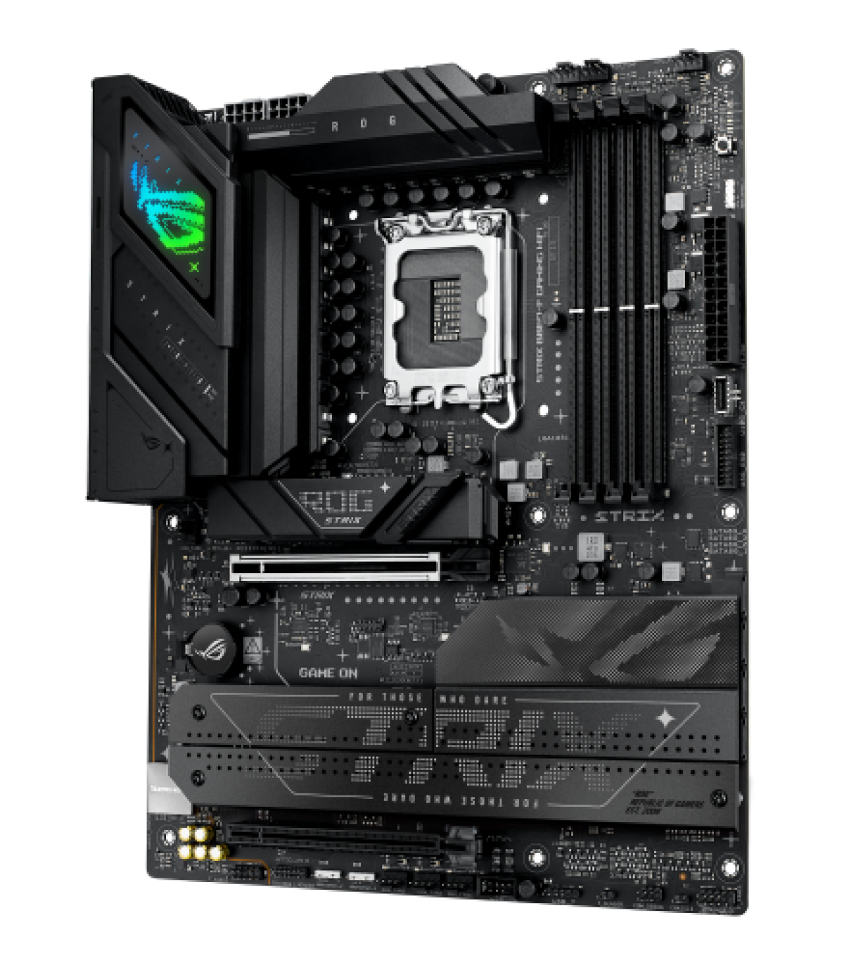ASUS ROG STRIX B860-F GAMING WIFI. Fabricante de procesador: Intel, Socket de procesador: LGA 1851 (Socket V1), Procesador compatible: Intel Core Ultra (Series 2). tipos de memoria compatibles: DDR5-SDRAM, Memoria interna máxima: 256 GB, Tipo de ranuras de memoria: DIMM. Interfaces de disco de almacenamiento soportados: M.2, SATA III, Tipos de unidades de almacenamiento admitidas: HDD & SSD, Niveles RAID: 0, 1, 5, 10. Tipo de interfaz ethernet: 2.5 Gigabit Ethernet, Estándar Wi-Fi: Wi-Fi 7 (802.11be). Componente para: PC, Factor de forma: ATX, Familia del chipset: Intel