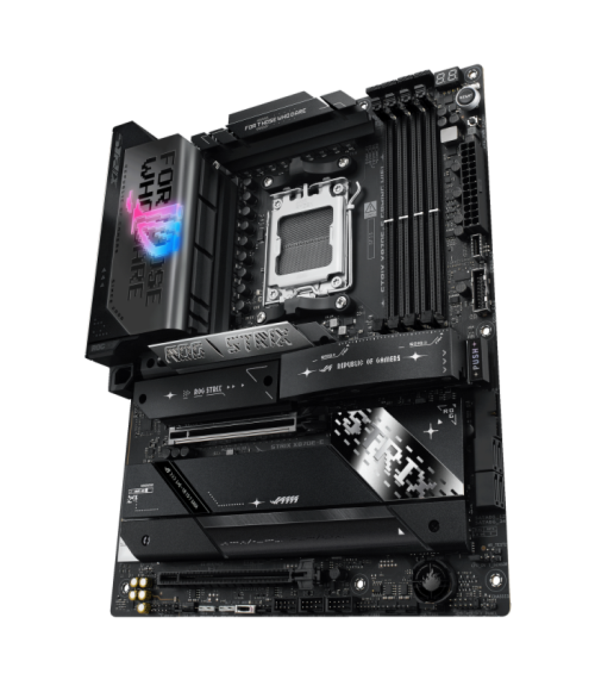 ASUS ROG STRIX X870E-E GAMING WIFI. Fabricante de procesador: AMD, Socket de procesador: Zócalo AM5, Sockets de procesador soportados: Zócalo AM5. tipos de memoria compatibles: DDR5-SDRAM, Memoria interna máxima: 192 GB, Tipo de ranuras de memoria: DIMM. Interfaces de disco de almacenamiento soportados: M.2, SATA III, Tipos de unidades de almacenamiento admitidas: HDD & SSD, Niveles RAID: 0, 1, 10, 5. Tipo de interfaz ethernet: 5 Gigabit Ethernet, Estándar Wi-Fi: Wi-Fi 7 (802.11be), Wi-Fi estándares: Wi-Fi 7 (802.11be). Componente para: PC, Factor de forma: ATX, Familia del chipset: AMD