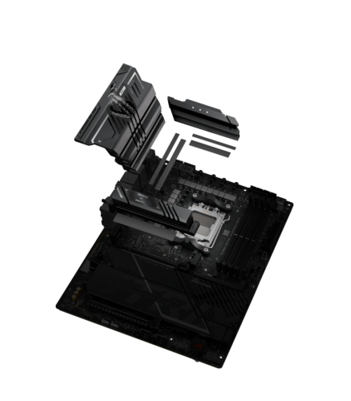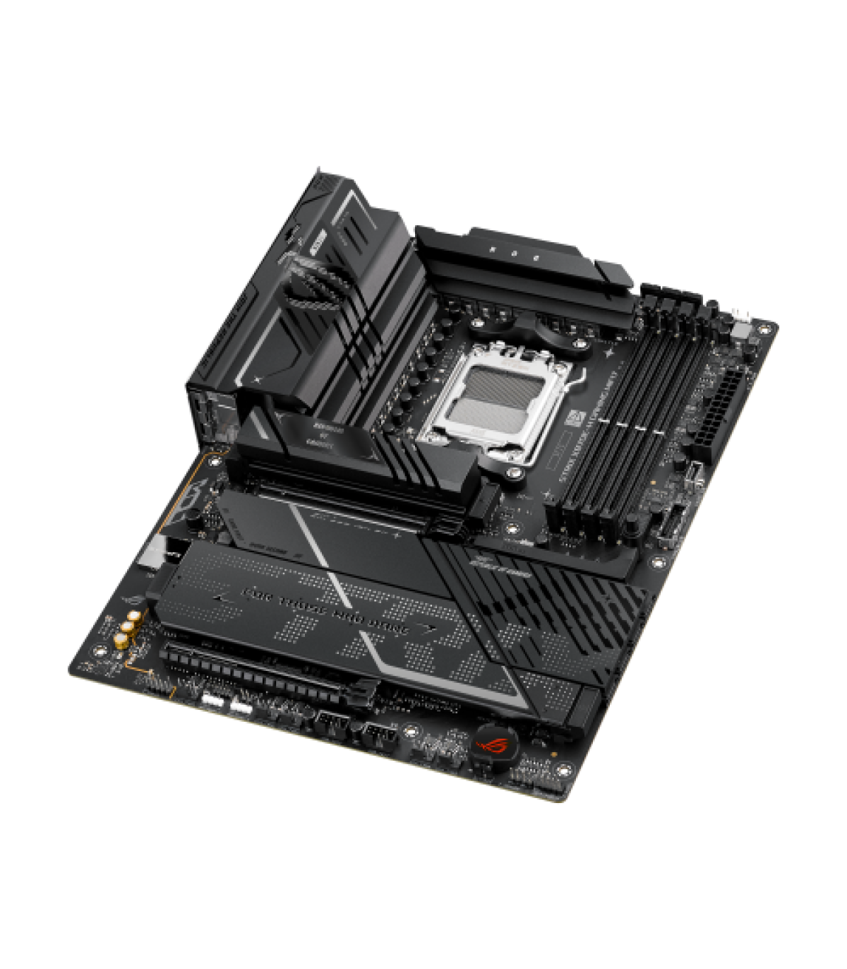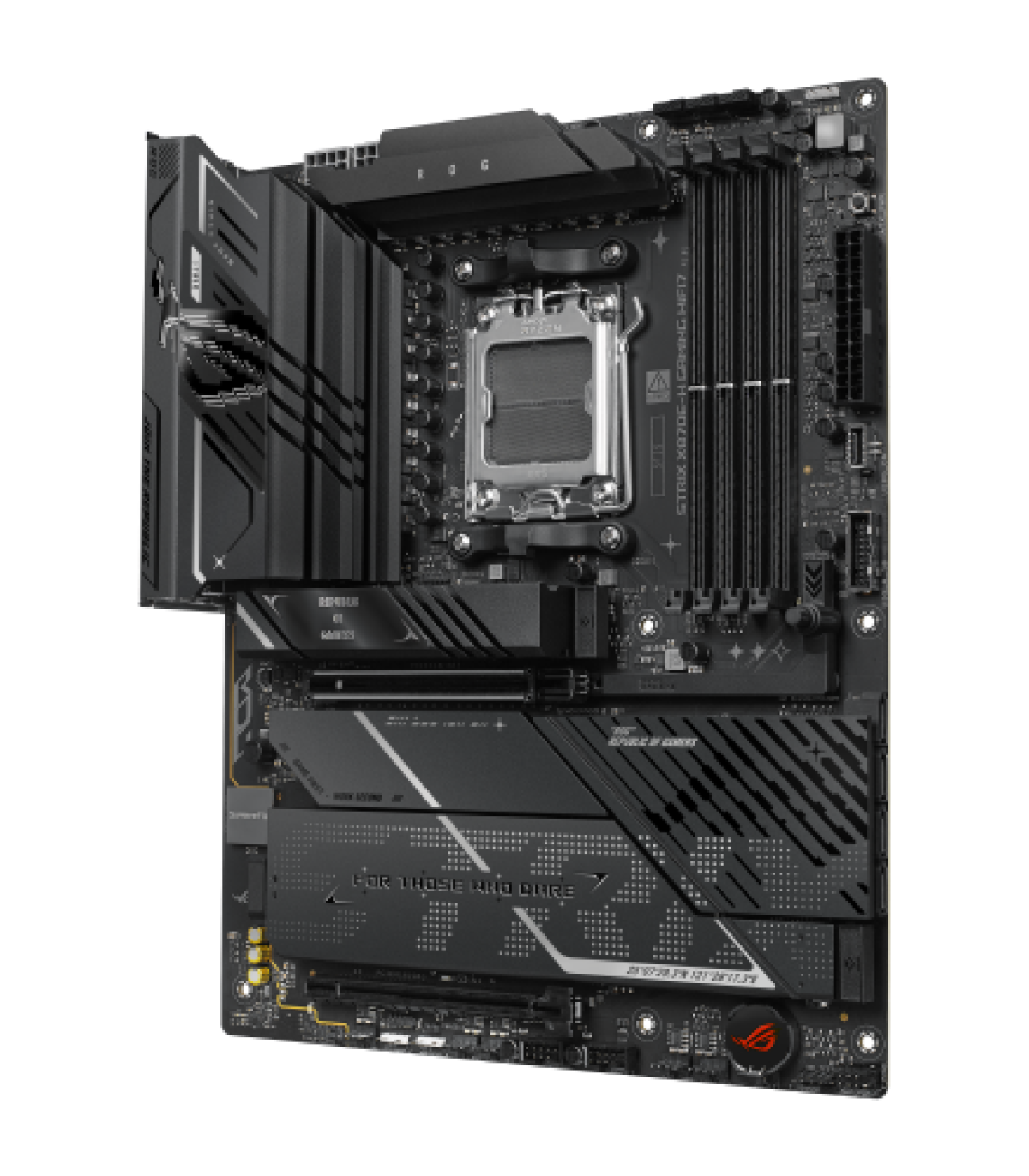 ASUS ROG STRIX X870E-H GAMING WIFI7. Fabricante de procesador: AMD, Socket de procesador: Zócalo AM5, Procesador compatible: AMD Ryzen 7000 Series, AMD Ryzen 8000 Series, AMD Ryzen 9000 Series. tipos de memoria compatibles: DDR5-SDRAM, Memoria interna máxima: 256 GB, Tipo de ranuras de memoria: DIMM. Interfaces de disco de almacenamiento soportados: M.2, SATA III, Tipos de unidades de almacenamiento admitidas: HDD & SSD, Niveles RAID: 0, 1, 10, 5. Tipo de interfaz ethernet: 5 Gigabit Ethernet, Estándar Wi-Fi: Wi-Fi 7 (802.11be), Wi-Fi estándares: Wi-Fi 7 (802.11be). Componente para: PC, Factor de forma: ATX, Familia del chipset: AMD