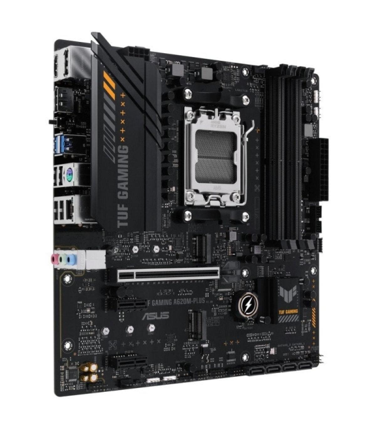 ASUS TUF GAMING A620M-PLUS toma todos los elementos esenciales de los procesadores de la serie AMD Ryzen 7000 y los combina con funciones listas para jugar y durabilidad comprobada. Diseñada con componentes de grado militar, una solución de alimentación mejorada y un sistema de refrigeración integral, esta placa base supera las expectativas con un rendimiento sólido y estable para juegos de maratón.