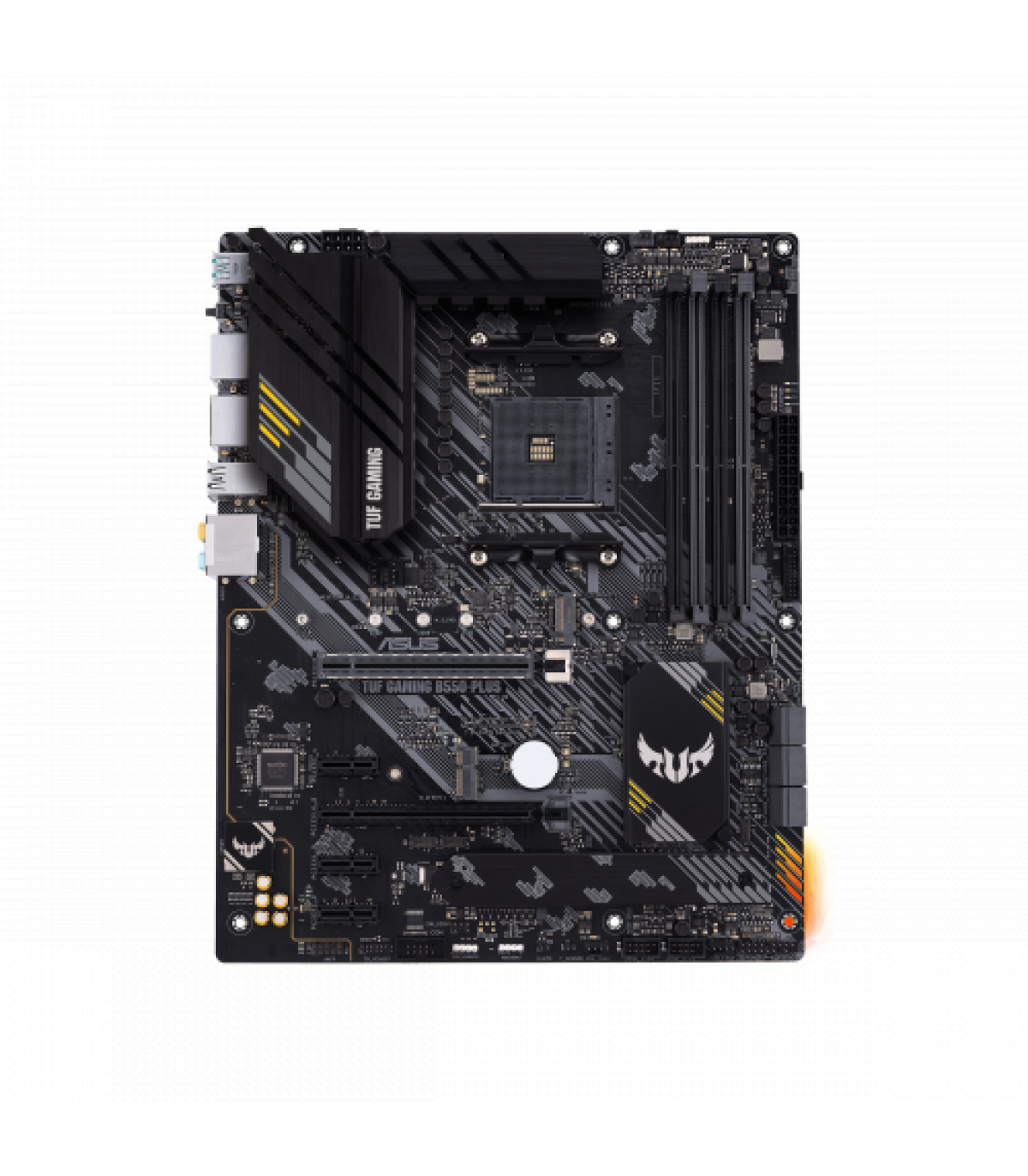 ASUS TUF Gaming B550-PLUS. Fabricante de procesador: AMD, Socket de procesador: Zócalo AM4, Procesador compatible: AMD Ryzen 3 3rd Gen, 3rd Generation AMD Ryzen 5, 3rd Generation AMD Ryzen 7, 3rd Generation AMD.... tipos de memoria compatibles: DDR4-SDRAM, Tipo de ranuras de memoria: DIMM, Velocidades de reloj de memoria soportadas: 2133,2400,2666,2800,3000,3200,3333,3466,3600,3733,3866,4000,4133,4266,4400,4600 MHz. Interfaces de disco de almacenamiento soportados: M.2, SATA. Soporte para proceso paralelo: 2-Way CrossFireX. Tipo de interfaz ethernet: 2.5 Gigabit Ethernet, Controlador LAN: Realtek RTL8125B