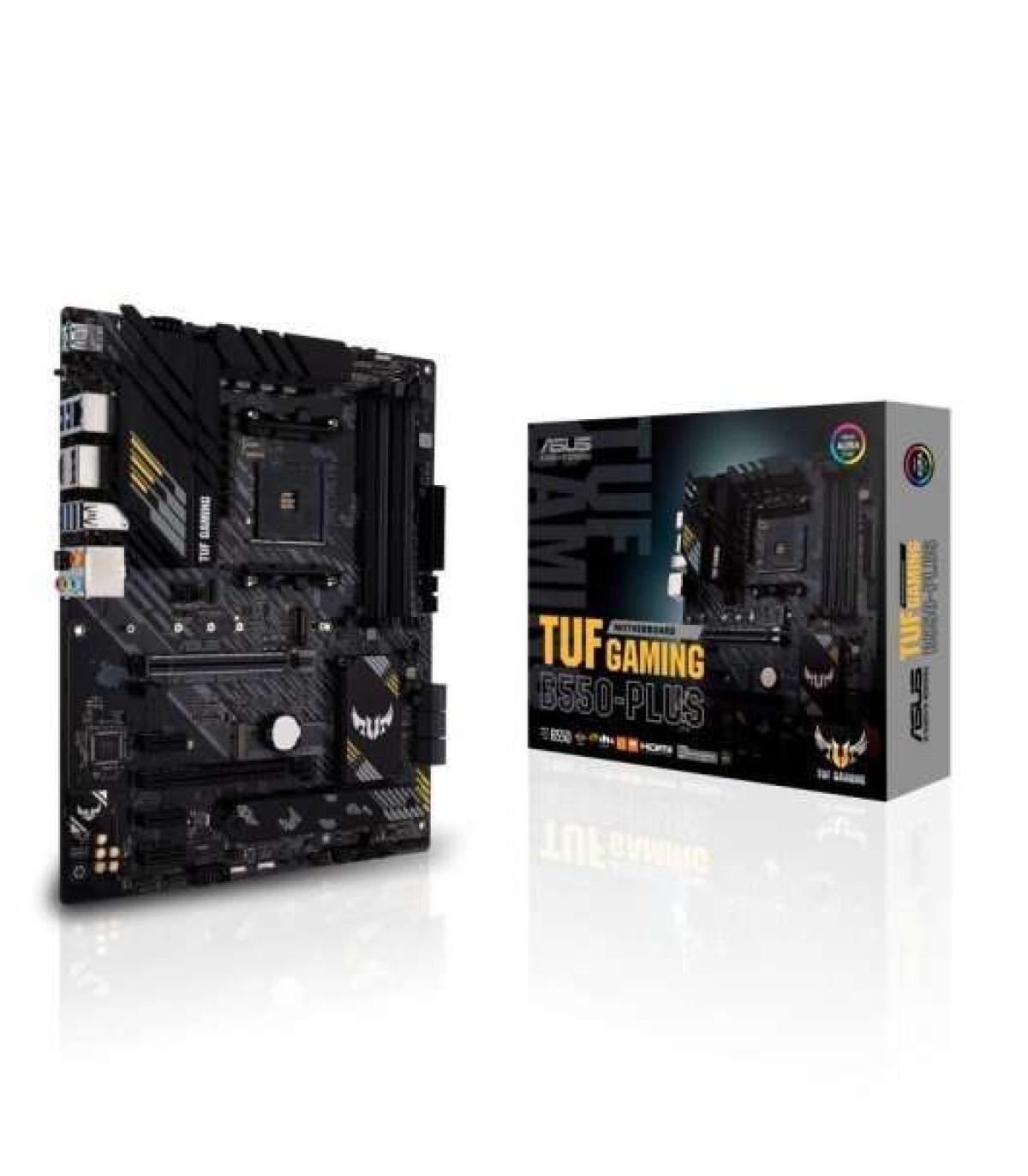 TUF Gaming B550-Plus proporciona un paquete de juegos completo y de alto rendimiento con una larga lista de características para mejorar su experiencia, que incluyen redes ultrarrápidas para un juego en línea más fluido, audio impecable con señales posicionales para juegos FPS e iluminación RGB integrada que se sincroniza con accesorios para ayudarlo a crear una atmósfera de juego personalizada.