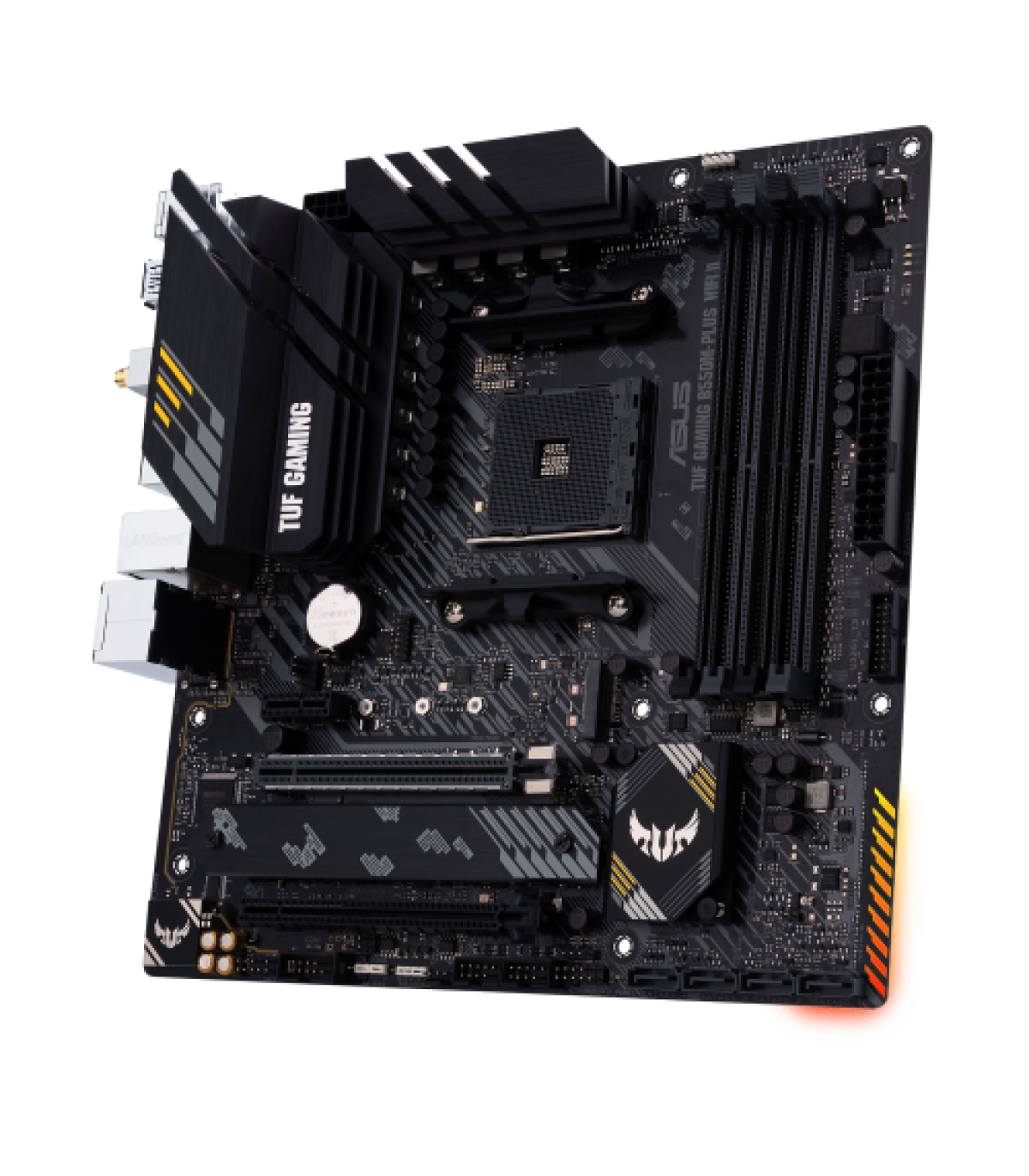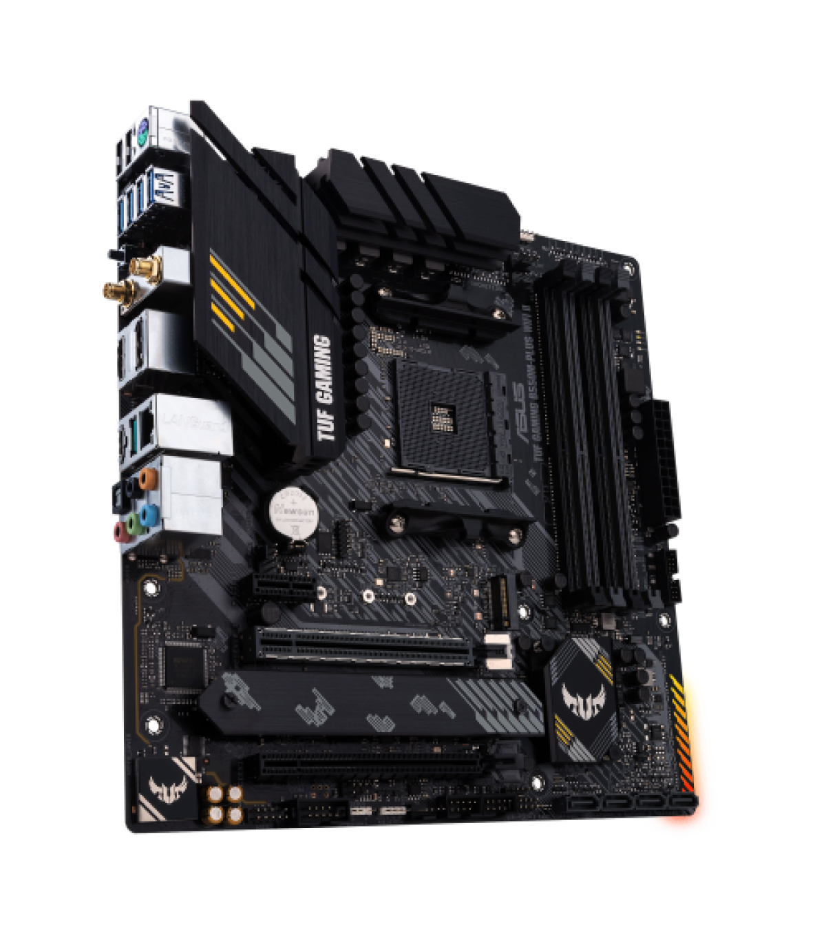 ASUS TUF GAMING B550M-PLUS WIFI II. Fabricante de procesador: AMD, Socket de procesador: Zócalo AM4, Procesador compatible: AMD Ryzen 3, AMD Ryzen 5, AMD Ryzen 7, 3rd Generation AMD Ryzen 9, AMD Ryzen 9 5th Gen. tipos de memoria compatibles: DDR4-SDRAM, Memoria interna máxima: 128 GB, Tipo de ranuras de memoria: DIMM. Interfaces de disco de almacenamiento soportados: M.2,PCI Express 3.0,PCI Express 4.0,SATA III, Tipos de unidades de almacenamiento admitidas: HDD & SSD. Máxima resolución: 3840 x 2160 Pixeles. Conector USB: USB tipo A, USB Tipo C