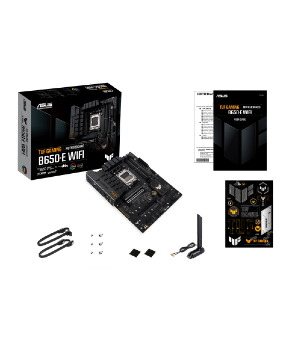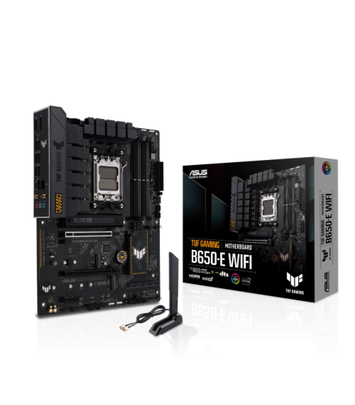 ASUS TUF GAMING B650-E WIFI. Fabricante de procesador: AMD, Socket de procesador: Zócalo AM5, Sockets de procesador soportados: Zócalo AM5. tipos de memoria compatibles: DDR5-SDRAM, Memoria interna máxima: 192 GB, Tipo de ranuras de memoria: DIMM. Interfaces de disco de almacenamiento soportados: M.2, SATA III, Tipos de unidades de almacenamiento admitidas: HDD & SSD, Niveles RAID: 0, 1, 10. Tipo de interfaz ethernet: 2.5 Gigabit Ethernet, Estándar Wi-Fi: Wi-Fi 6E (802.11ax), Wi-Fi estándares: 802.11a, 802.11b, 802.11g, Wi-Fi 4 (802.11n), Wi-Fi 5 (802.11ac), Wi-Fi 6 (802.11ax), Wi-Fi 6E.... Componente para: PC, Factor de forma: ATX, Familia del chipset: AMD