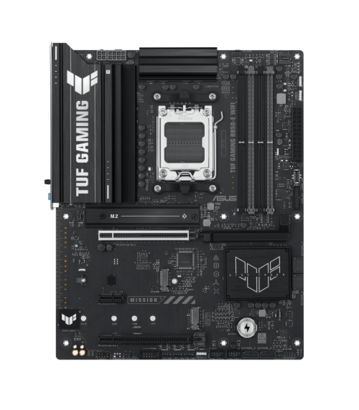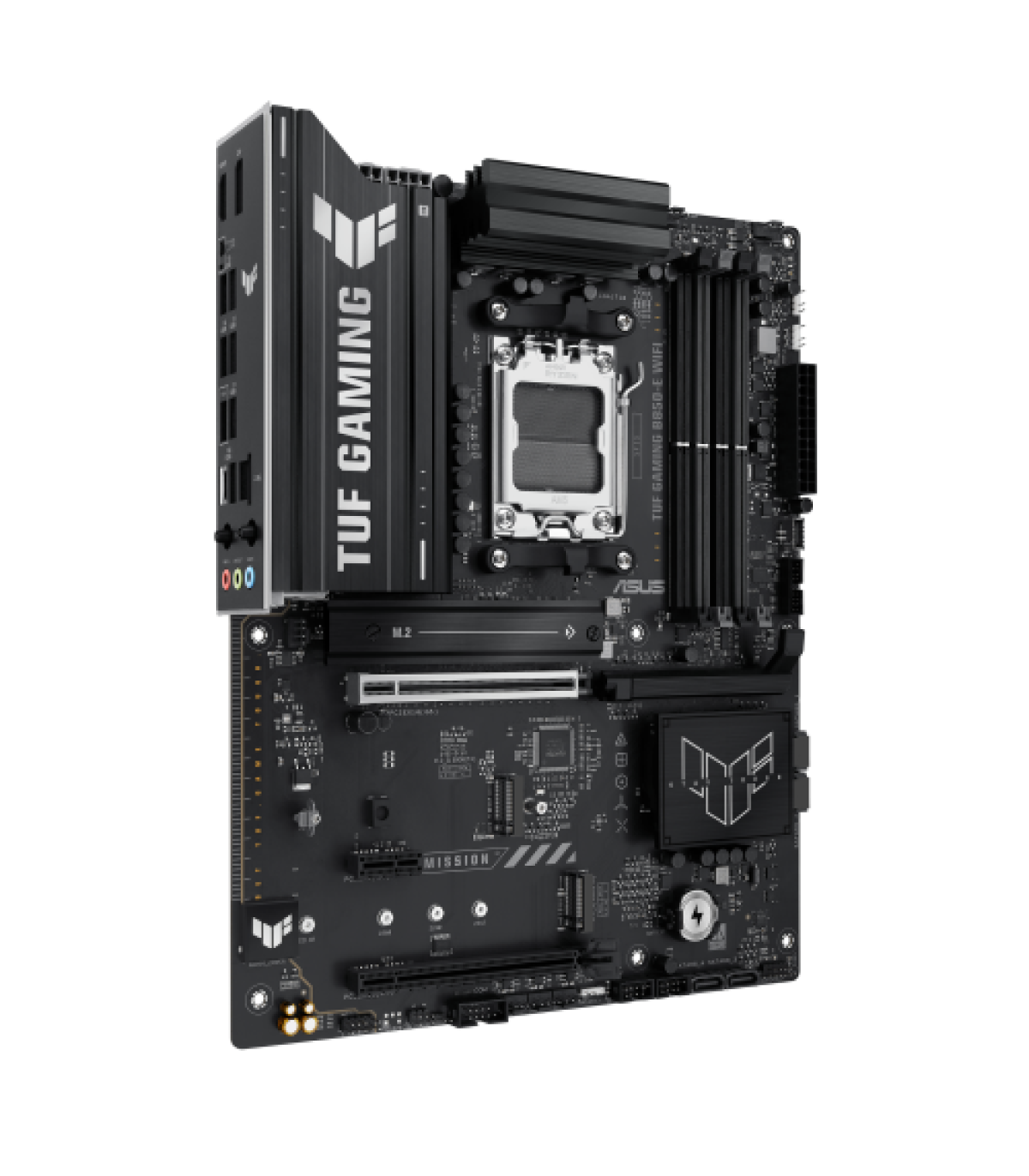 ASUS TUF GAMING B850-E WIFI. Fabricante de procesador: AMD, Socket de procesador: Zócalo AM5, Procesador compatible: AMD Ryzen 7000 Series, AMD Ryzen 8000 Series, AMD Ryzen 9000 Series. tipos de memoria compatibles: DDR5-SDRAM, Memoria interna máxima: 256 GB, Tipo de ranuras de memoria: DIMM. Interfaces de disco de almacenamiento soportados: M.2, SATA III, Tipos de unidades de almacenamiento admitidas: HDD & SSD, Niveles RAID: 0, 1, 5, 10. Conector USB: USB tipo A, USB Tipo C. Tipo de interfaz ethernet: 2.5 Gigabit Ethernet, Estándar Wi-Fi: Wi-Fi 6E (802.11ax)