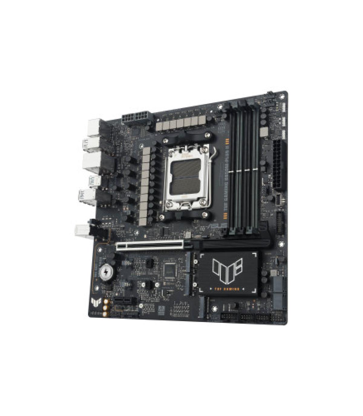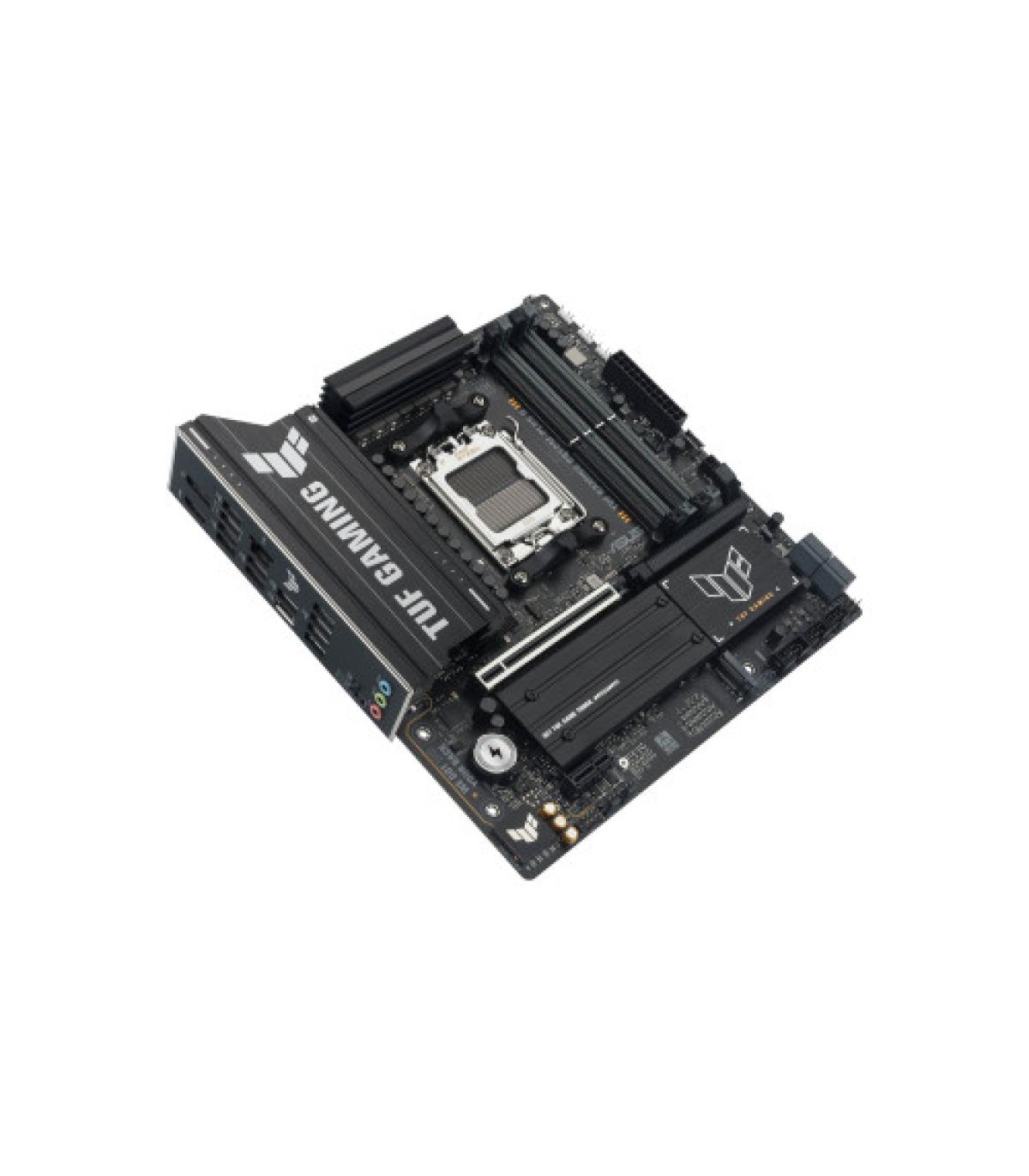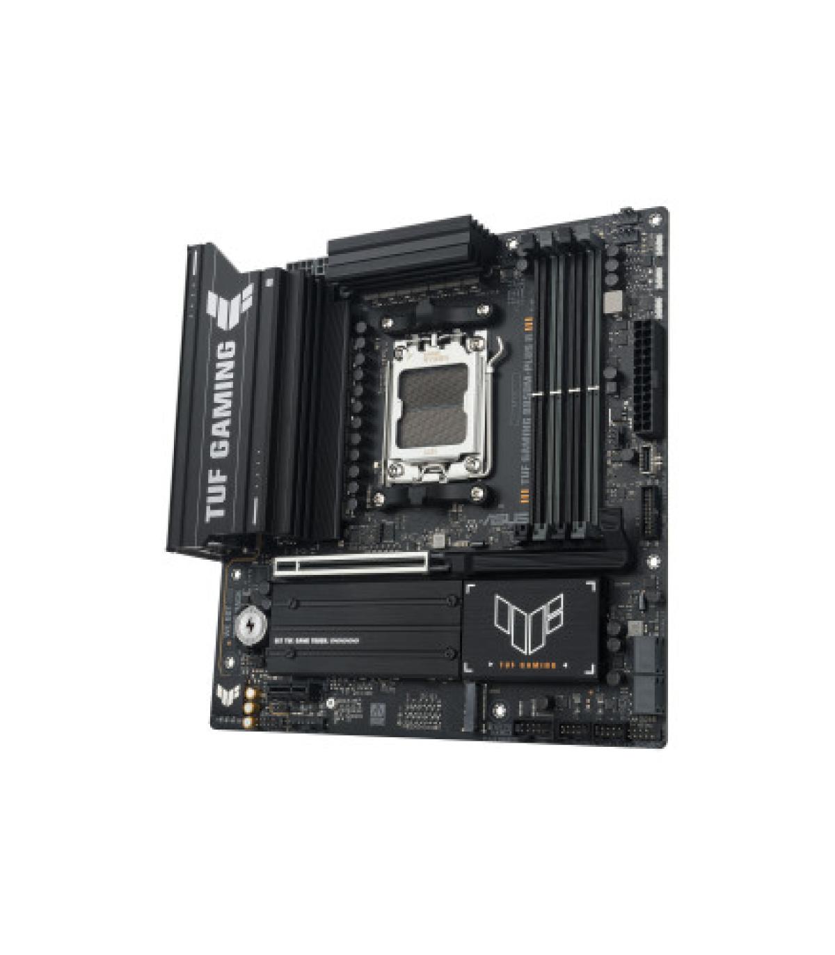 ASUS TUF GAMING B850M-PLUS II. Fabricante de procesador: AMD, Socket de procesador: Zócalo AM5, Procesador compatible: AMD Ryzen 7000 Series, AMD Ryzen 8000 Series, AMD Ryzen 9000 Series. tipos de memoria compatibles: DDR5-SDRAM, Memoria interna máxima: 256 GB, Tipo de ranuras de memoria: DIMM. Interfaces de disco de almacenamiento soportados: M.2, SATA III, Tipos de unidades de almacenamiento admitidas: HDD & SSD, Niveles RAID: 0, 1, 5, 10. Tipo de interfaz ethernet: 2.5 Gigabit Ethernet. Componente para: PC, Factor de forma: micro ATX, Familia del chipset: AMD