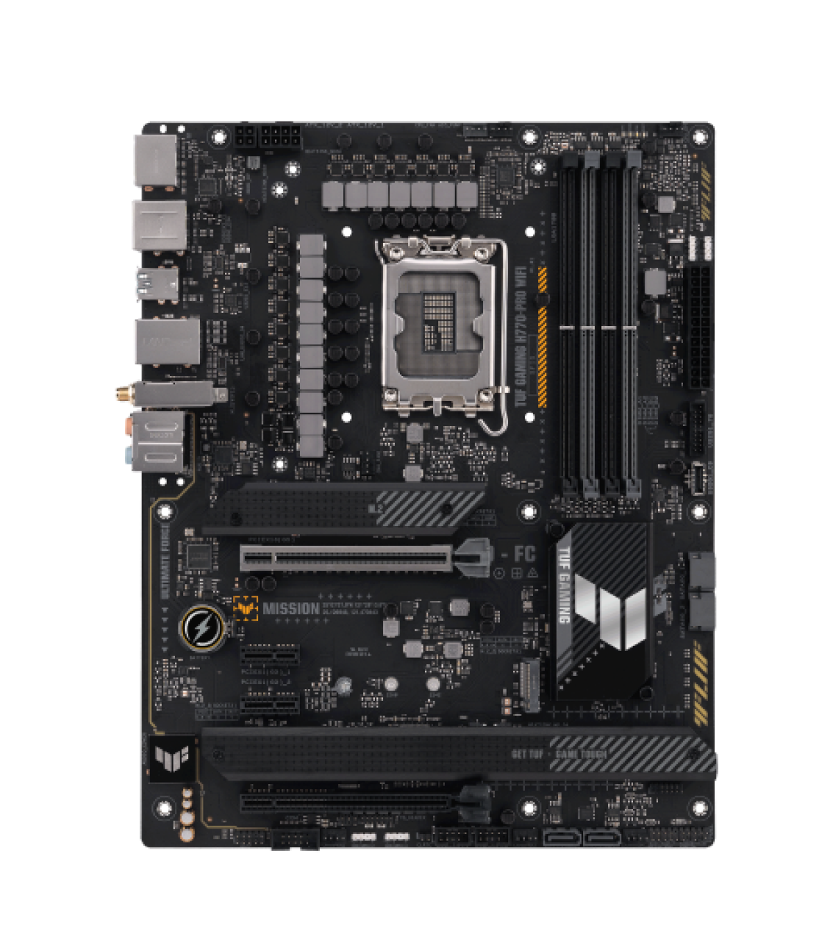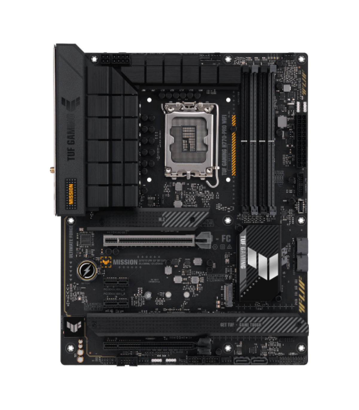 ASUS TUF GAMING H770-PRO WIFI. Fabricante de procesador: Intel, Socket de procesador: LGA 1700, Procesador compatible: Intel® Celeron®, Intel® Core™ i3, Intel® Core™ i5, Intel® Core™ i7, Intel® Core™ i9,.... tipos de memoria compatibles: DDR5-SDRAM, Memoria interna máxima: 128 GB, Tipo de ranuras de memoria: DIMM. Interfaces de disco de almacenamiento soportados: M.2, SATA III, Tipos de unidades de almacenamiento admitidas: HDD & SSD, Niveles RAID: 0, 1, 5, 10. Tipo de interfaz ethernet: 2.5 Gigabit Ethernet, Estándar Wi-Fi: Wi-Fi 6 (802.11ax), Wi-Fi estándares: 802.11a, 802.11b, 802.11g, Wi-Fi 4 (802.11n), Wi-Fi 5 (802.11ac), Wi-Fi 6 (802.11ax). Componente para: PC, Factor de forma: ATX, Familia del chipset: Intel