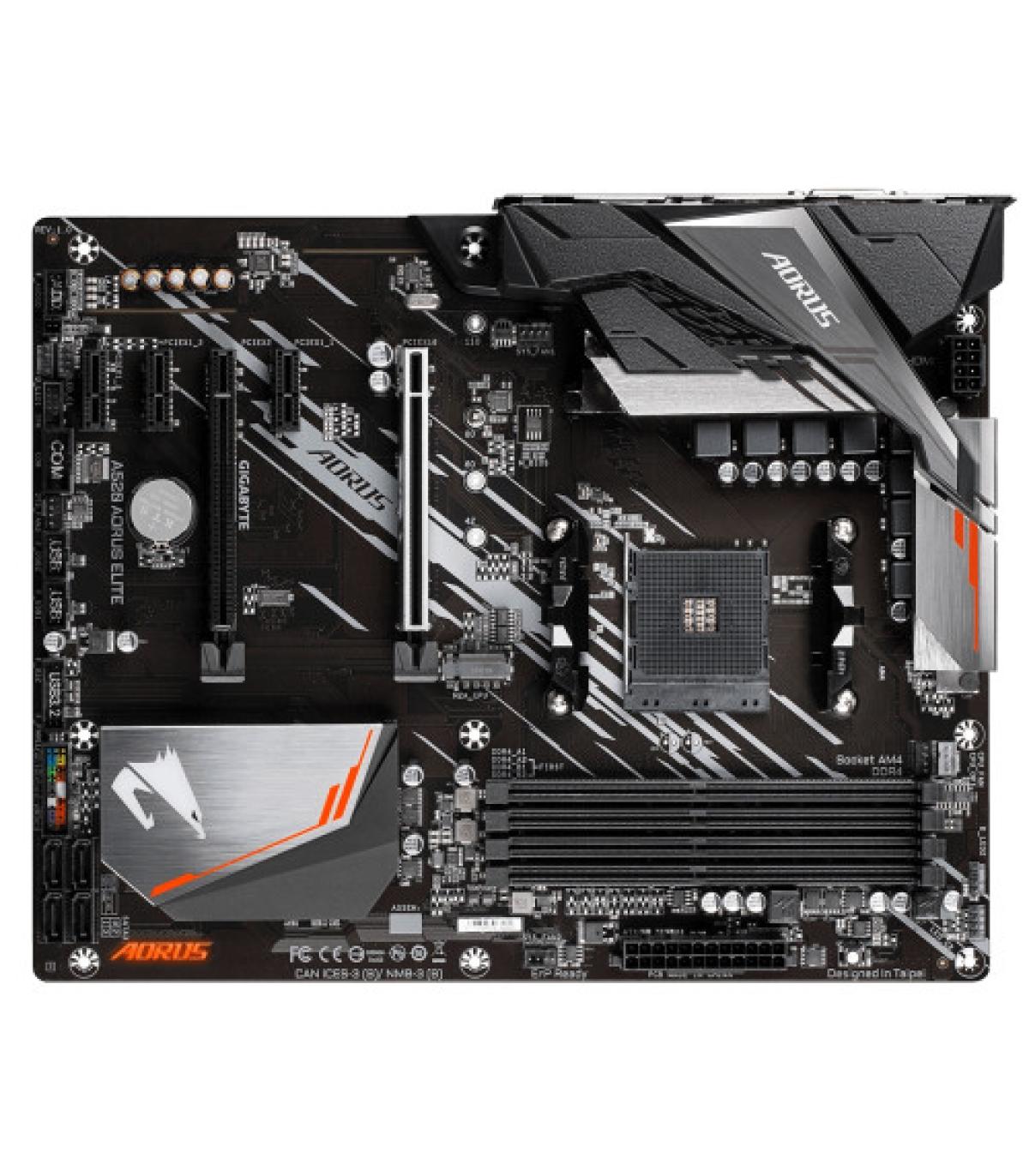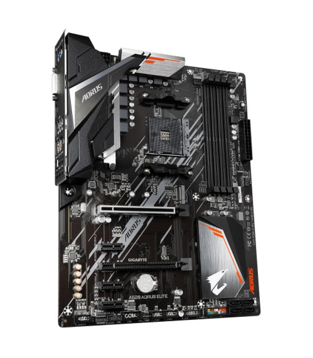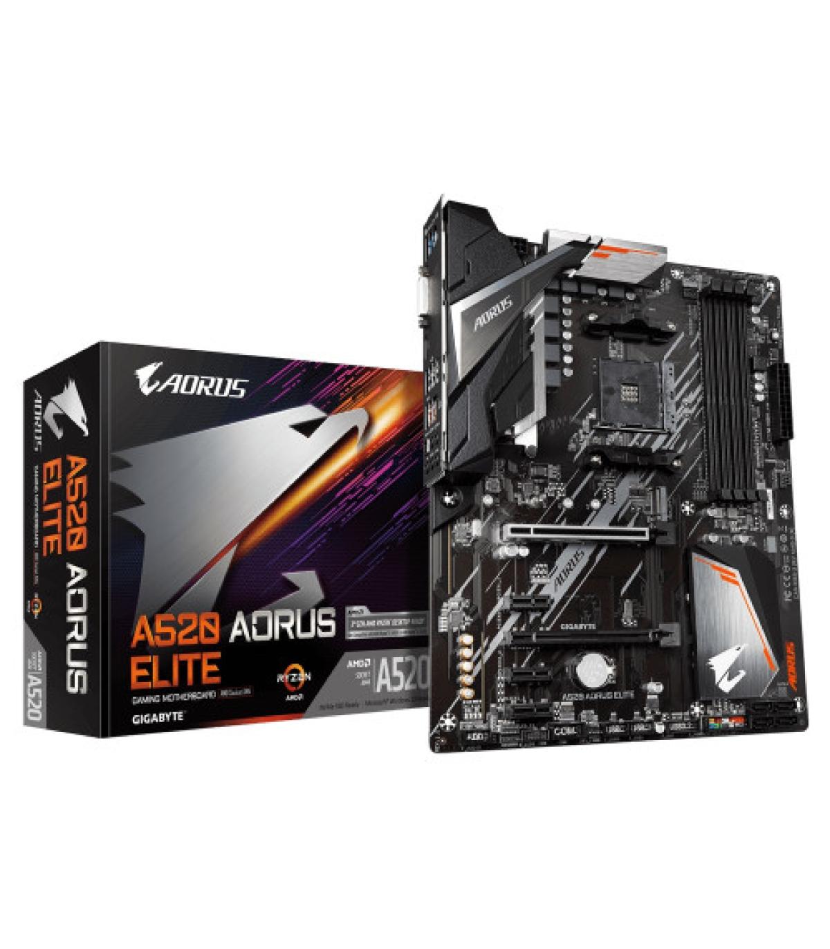 Gigabyte A520 AORUS ELITE. Fabricante de procesador: AMD, Socket de procesador: Zócalo AM4, Procesador compatible: AMD Ryzen 3 3rd Gen, 3rd Generation AMD Ryzen 5, 3rd Generation AMD Ryzen 7, 3rd Generation AMD.... tipos de memoria compatibles: DDR4-SDRAM, Tipo de ranuras de memoria: DIMM, Velocidades de reloj de memoria soportadas: 2133,2400,2667,2933,3200,3333,3600,4000,4400,4600,4733 MHz. Interfaces de disco de almacenamiento soportados: M.2, Serial ATA III. Máxima resolución: 4096 x 2160 Pixeles. Tipo de interfaz ethernet: Gigabit Ethernet