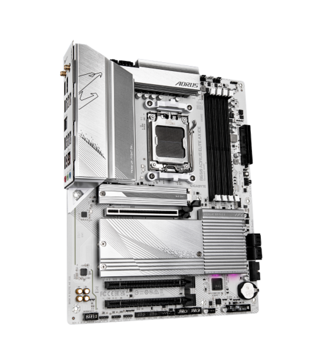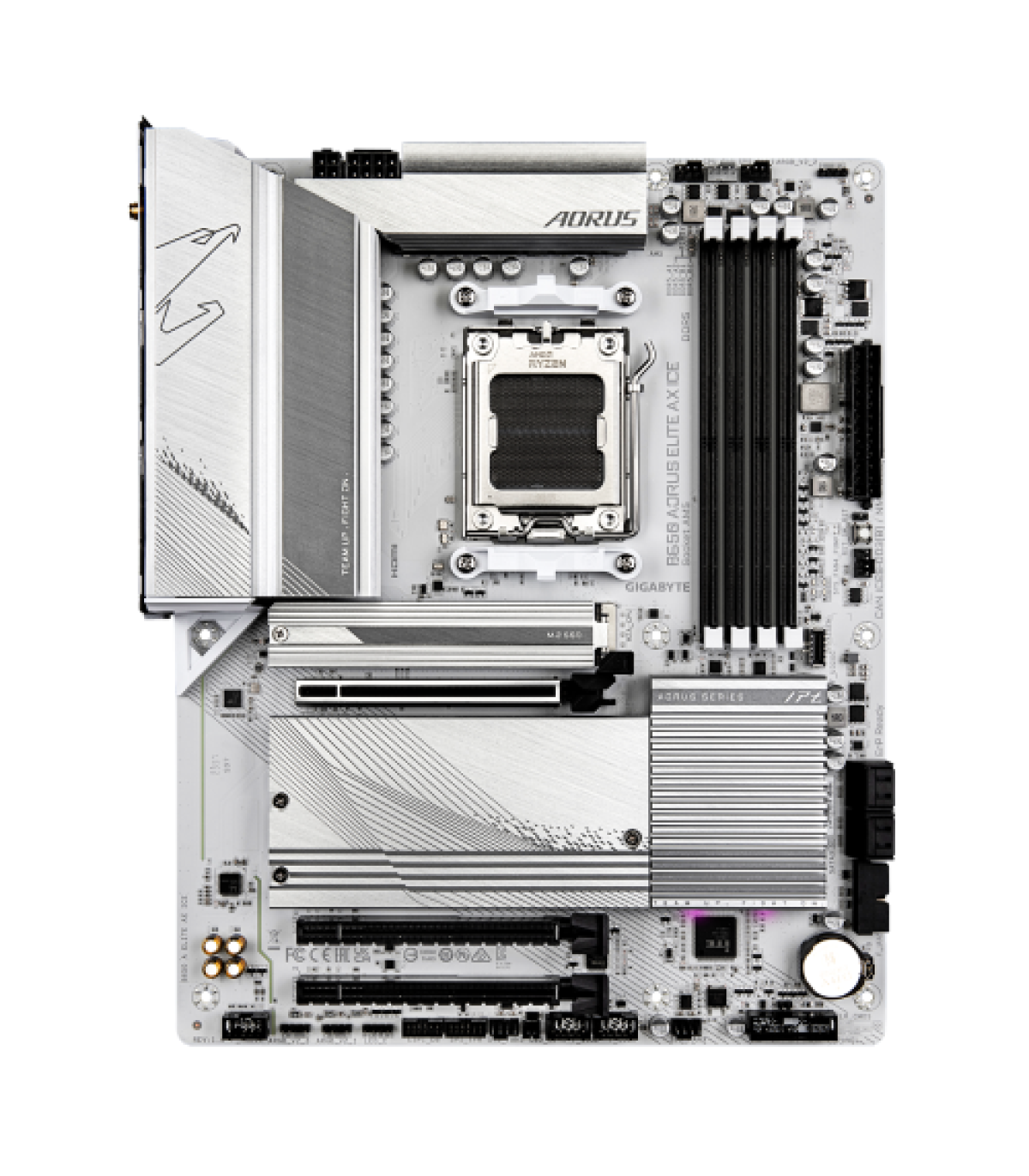 Gigabyte B650 AORUS ELITE AX ICE. Fabricante de procesador: AMD, Socket de procesador: Zócalo AM5, Procesador compatible: AMD Ryzen™ 7. tipos de memoria compatibles: DDR5-SDRAM, Memoria interna máxima: 192 GB, Tipo de ranuras de memoria: DIMM. Interfaces de disco de almacenamiento soportados: M.2, SATA III, Tipos de unidades de almacenamiento admitidas: HDD & SSD, Niveles RAID: 0, 1, 5, 10. Conector USB: USB tipo A, USB Tipo C. Tipo de interfaz ethernet: 2.5 Gigabit Ethernet, Estándar Wi-Fi: Wi-Fi 6E (802.11ax), Wi-Fi estándares: 802.11a, 802.11b, 802.11g, Wi-Fi 4 (802.11n), Wi-Fi 5 (802.11ac), Wi-Fi 6 (802.11ax)