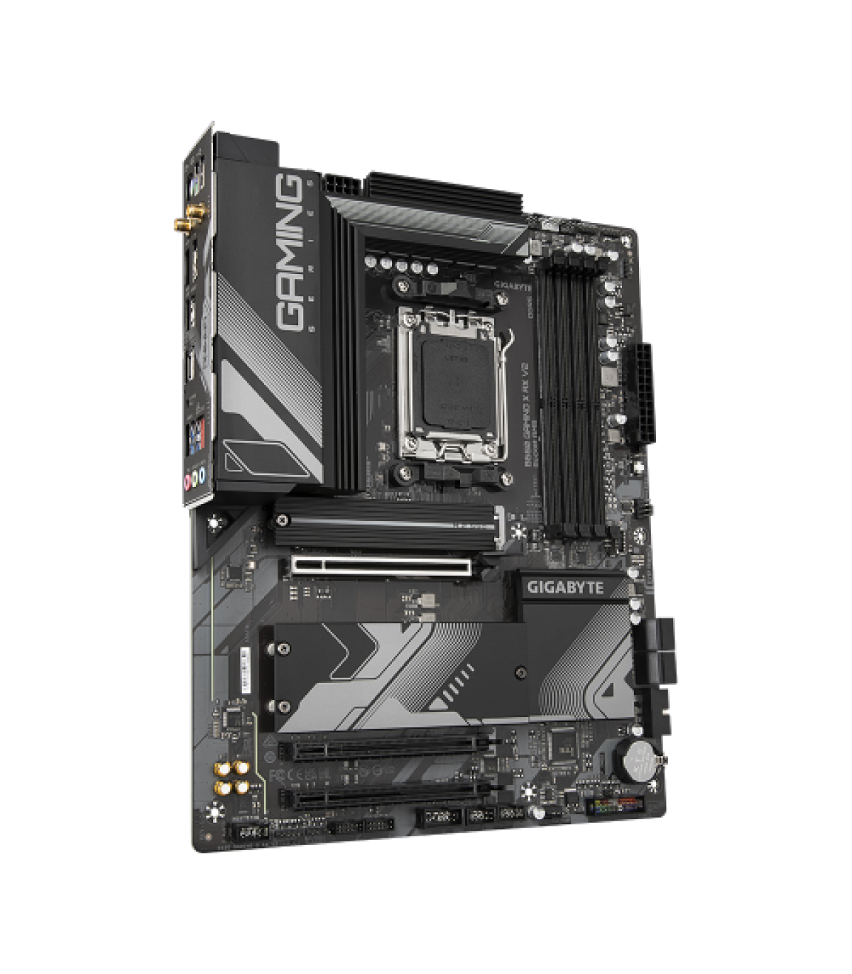Gigabyte B650 GAMING X AX V2. Fabricante de procesador: AMD, Socket de procesador: Zócalo AM5, Procesador compatible: AMD Ryzen™ 5, AMD Ryzen 7 7th Gen, AMD Ryzen 9 7th Gen. tipos de memoria compatibles: DDR5-SDRAM, Memoria interna máxima: 192 GB, Tipo de ranuras de memoria: DIMM. Interfaces de disco de almacenamiento soportados: M.2, PCI Express 4.0, SATA III, Tipos de unidades de almacenamiento admitidas: HDD & SSD, Niveles RAID: 0, 1, 10. Máxima resolución: 4096 x 2160 Pixeles. Conector USB: USB tipo A, USB Tipo C