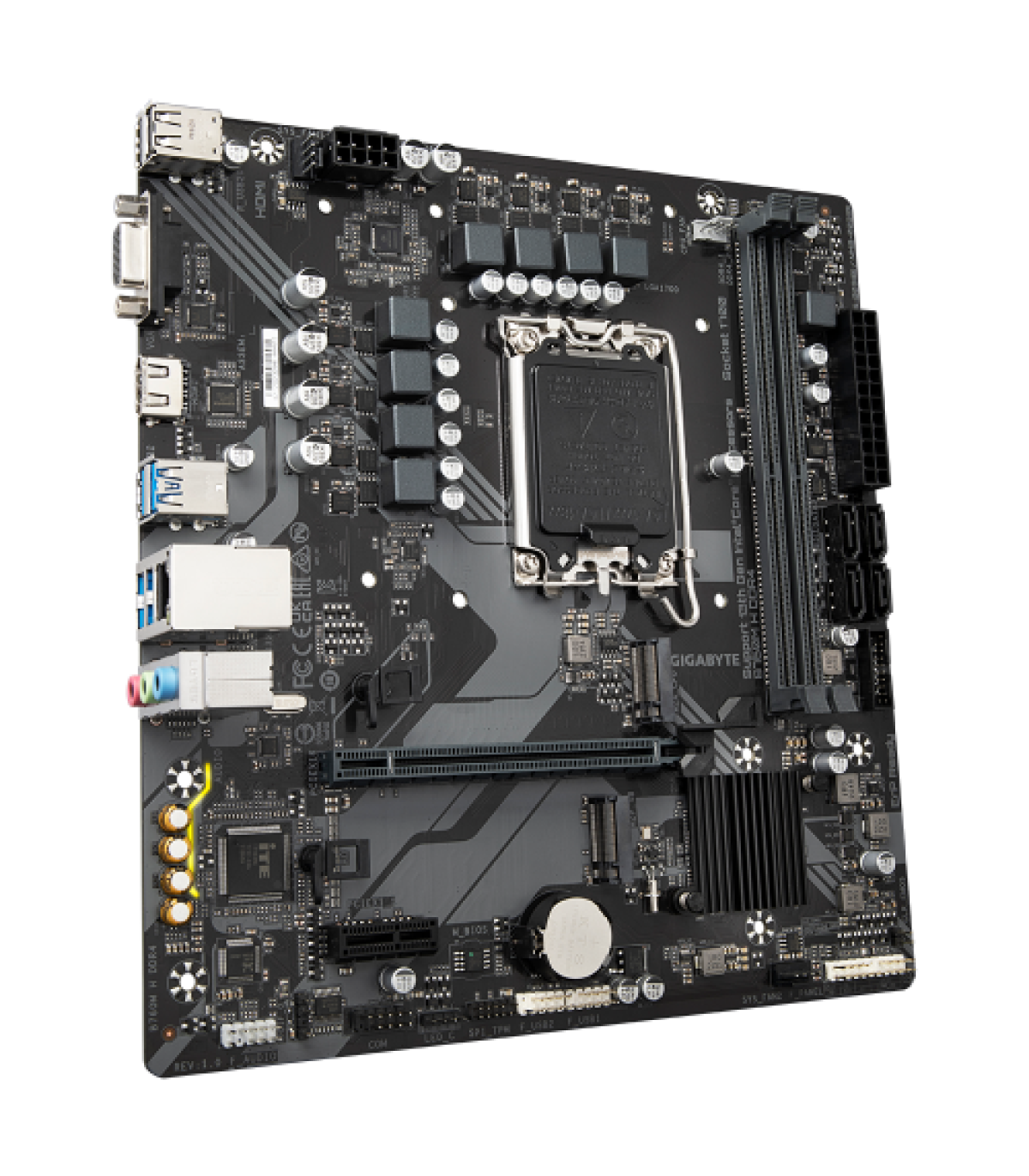 Gigabyte B760M H DDR4 (rev. 1.0). Fabricante de procesador: Intel, Socket de procesador: LGA 1700, Procesador compatible: Intel® Celeron®, Intel® Pentium® Gold. tipos de memoria compatibles: DDR4-SDRAM, Memoria interna máxima: 64 GB, Tipo de ranuras de memoria: DIMM. Interfaces de disco de almacenamiento soportados: M.2, SATA III, Niveles RAID: 0, 1, 5, 10. Tipo de interfaz ethernet: Gigabit Ethernet. Componente para: PC, Factor de forma: micro ATX, Familia del chipset: Intel