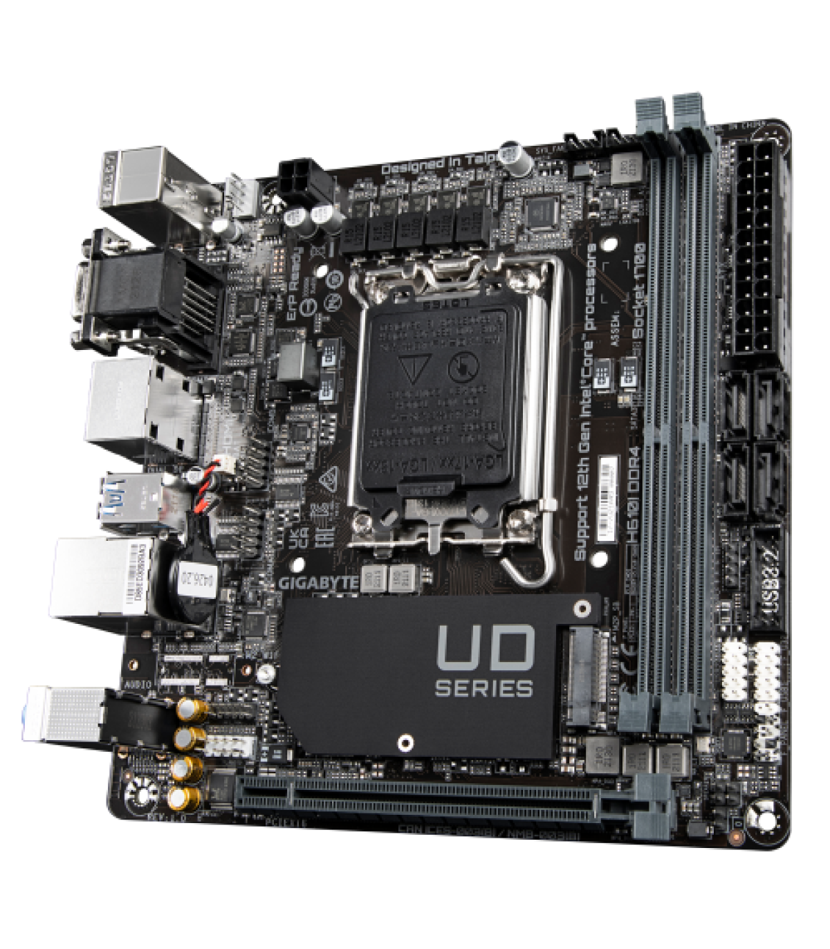 Gigabyte H610I DDR4. Fabricante de procesador: Intel, Socket de procesador: LGA 1700, Procesador compatible: Intel® Celeron®, Intel® Core™ i3, Intel® Core™ i5, Intel® Core™ i7, Intel® Core™ i9,.... tipos de memoria compatibles: DDR4-SDRAM, Memoria interna máxima: 64 GB, Tipo de ranuras de memoria: DIMM. Interfaces de disco de almacenamiento soportados: M.2, SATA III, Tipos de unidades de almacenamiento admitidas: HDD & SSD. Máxima resolución: 4096 x 2304 Pixeles. Conector USB: USB tipo A