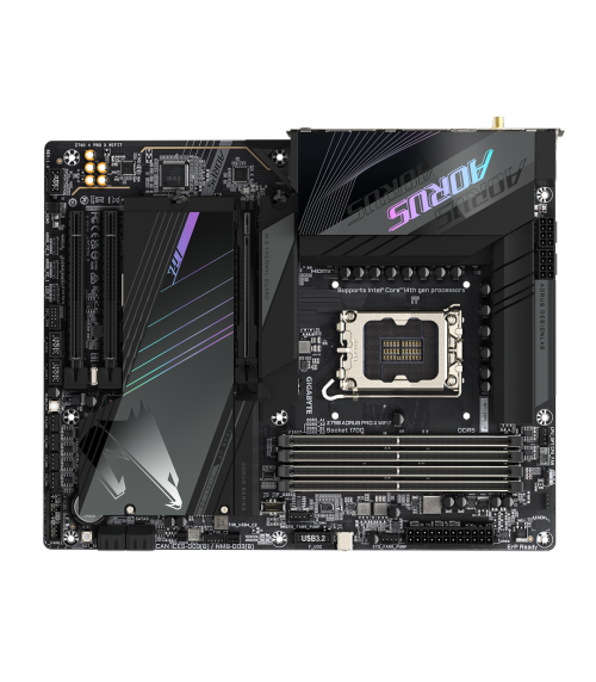 Gigabyte Z790 AORUS PRO X WIFI7. Fabricante de procesador: Intel, Socket de procesador: LGA 1700, Procesador compatible: Intel® Celeron®, Intel® Core™ i3, Intel® Core™ i5, Intel® Core™ i7, Intel® Core™ i9,.... tipos de memoria compatibles: DDR5-SDRAM, Memoria interna máxima: 192 GB, Tipo de ranuras de memoria: DIMM. Interfaces de disco de almacenamiento soportados: M.2, PCI Express 4.0, SATA III, Tipos de unidades de almacenamiento admitidas: HDD & SSD, Niveles RAID: 0, 1, 5, 10. Máxima resolución: 4096 x 2304 Pixeles. Conector USB: USB tipo A, USB Tipo C