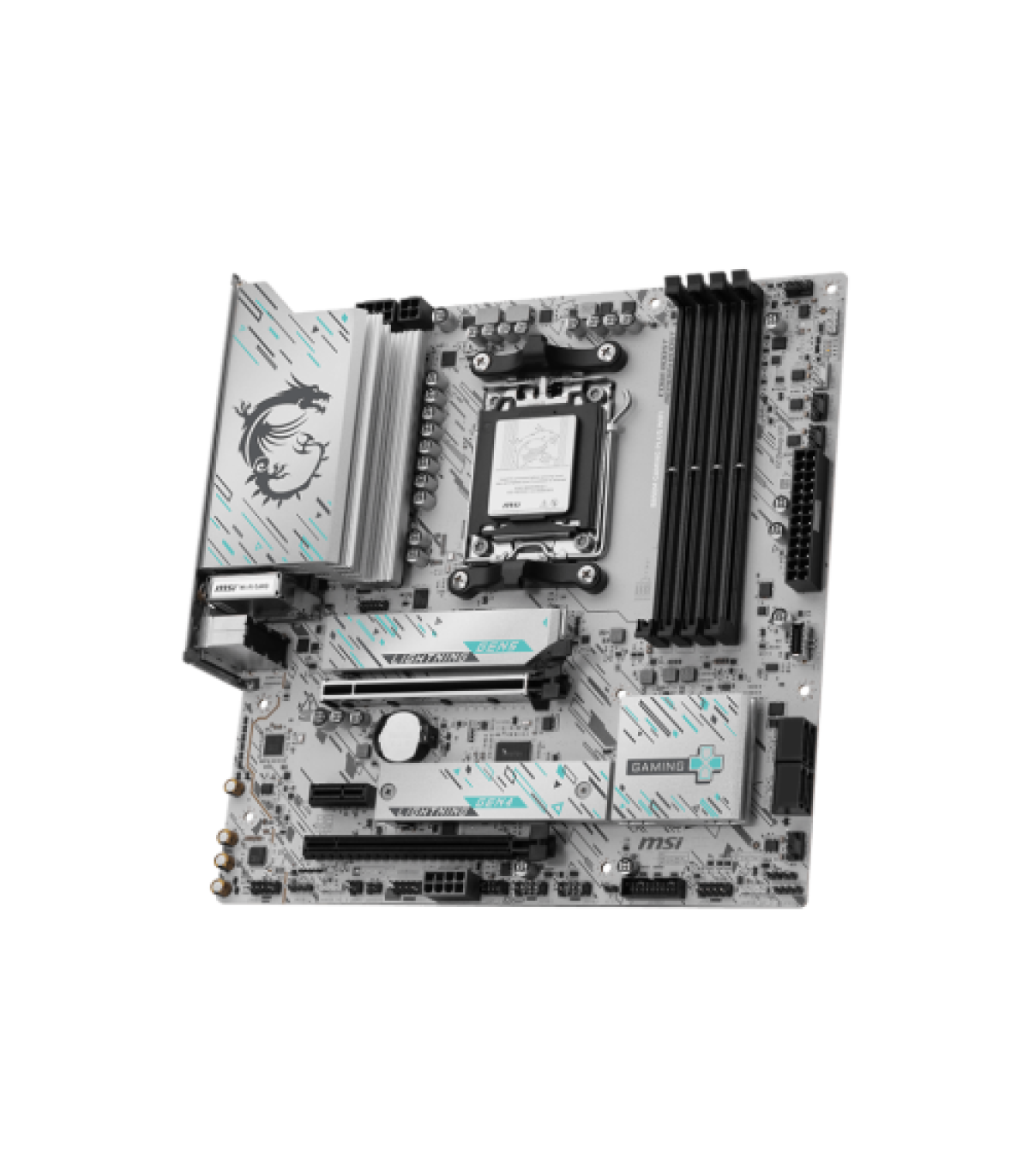 MSI B850M GAMING PLUS WIFI. Fabricante de procesador: AMD, Socket de procesador: Zócalo AM5, Procesador compatible: AMD Ryzen 7000 Series, AMD Ryzen 8000 Series, AMD Ryzen 9000 Series. tipos de memoria compatibles: DDR5-SDRAM, Memoria interna máxima: 256 GB, Tipo de ranuras de memoria: DIMM. Interfaces de disco de almacenamiento soportados: M.2, Tipos de unidades de almacenamiento admitidas: HDD & SSD, Niveles RAID: 0, 1, 10. Tipo de interfaz ethernet: 5 Gigabit Ethernet, Controlador LAN: Realtek RTL8126, Estándar Wi-Fi: Wi-Fi 7 (802.11be). Componente para: PC, Factor de forma: micro ATX, Familia del chipset: AMD