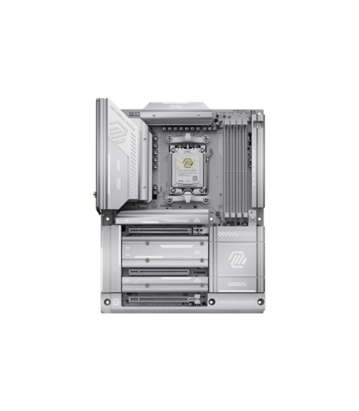 MSI MAG X870E TOMAHAWK MAX WIFI PZ. Fabricante de procesador: AMD, Socket de procesador: Zócalo AM5, Procesador compatible: AMD Ryzen 7000 Series, AMD Ryzen 8000 Series, AMD Ryzen 9000 Series. tipos de memoria compatibles: DDR5-SDRAM, Memoria interna máxima: 256 GB, Tipo de ranuras de memoria: DIMM. Interfaces de disco de almacenamiento soportados: M.2, SATA III, Tipos de unidades de almacenamiento admitidas: HDD & SSD. Tipo de interfaz ethernet: 5 Gigabit Ethernet, Controlador LAN: Realtek RTL8126, Estándar Wi-Fi: Wi-Fi 7 (802.11be). Componente para: PC, Factor de forma: ATX, Familia del chipset: AMD