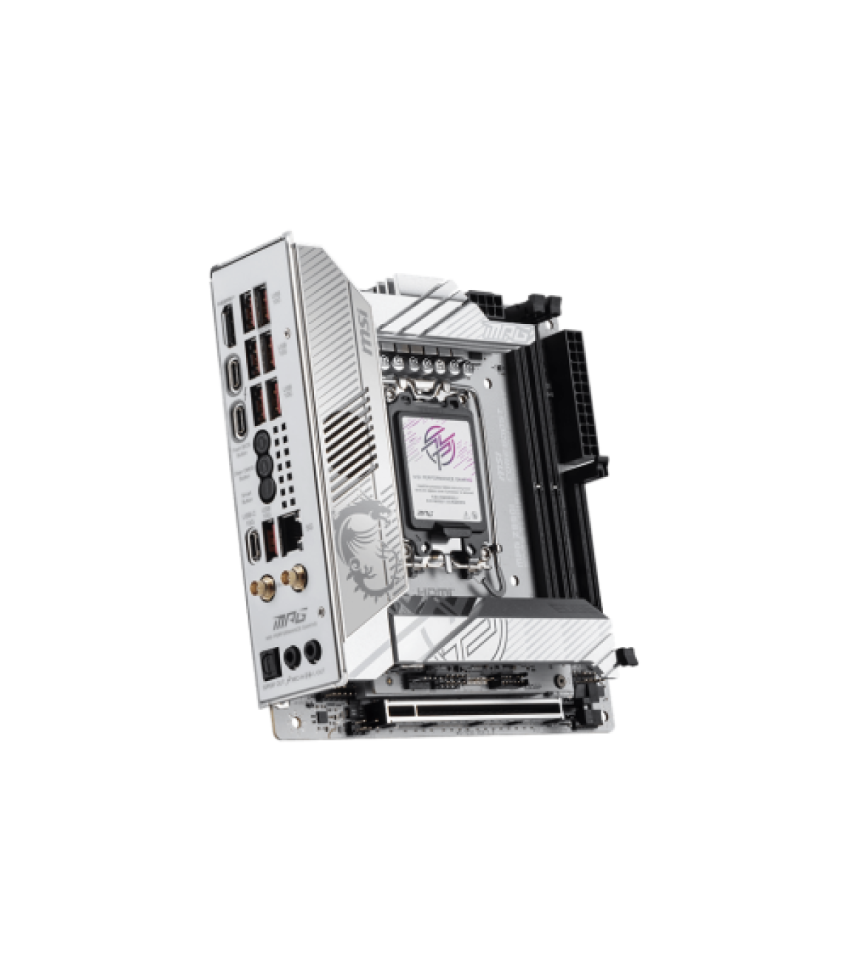 MSI MPG Z890I EDGE TI WIFI. Fabricante de procesador: Intel, Socket de procesador: LGA 1851 (Socket V1), Procesador compatible: Intel Core Ultra (Series 2). tipos de memoria compatibles: DDR5-SDRAM, Memoria interna máxima: 128 GB, Tipo de ranuras de memoria: DIMM. Interfaces de disco de almacenamiento soportados: M.2, SATA III, Tipos de unidades de almacenamiento admitidas: HDD & SSD, Niveles RAID: 0, 5, 10. Tipo de interfaz ethernet: 5 Gigabit Ethernet, Estándar Wi-Fi: Wi-Fi 7 (802.11be), Wi-Fi estándares: 802.11a, 802.11b, 802.11g, Wi-Fi 4 (802.11n), Wi-Fi 5 (802.11ac), Wi-Fi 6 (802.11ax), Wi-Fi 6E.... Componente para: PC, Factor de forma: mini ITX, Familia del chipset: Intel