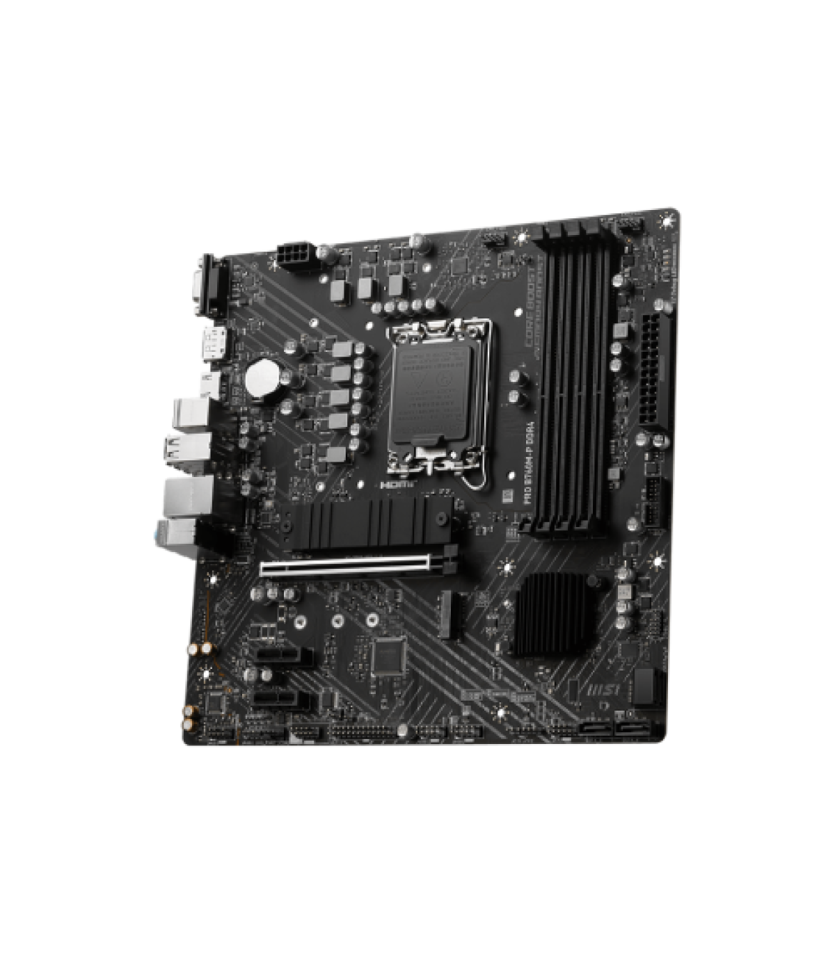 MSI PRO B760M-P DDR4. Fabricante de procesador: Intel, Socket de procesador: LGA 1700, Procesador compatible: Intel® Celeron®, Intel® Pentium® Gold. tipos de memoria compatibles: DDR4-SDRAM, Memoria interna máxima: 128 GB, Tipo de ranuras de memoria: DIMM. Interfaces de disco de almacenamiento soportados: M.2, SATA III, Niveles RAID: 0, 1, 5, 10. Tipo de interfaz ethernet: 2.5 Gigabit Ethernet. Componente para: PC, Factor de forma: micro ATX, Familia del chipset: Intel