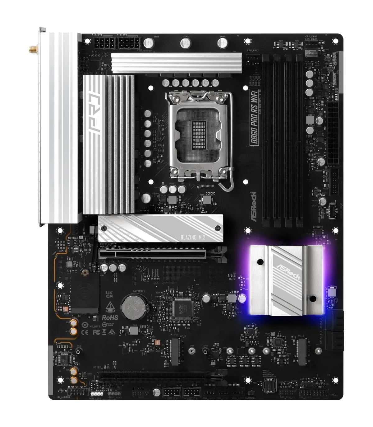 PLACA ASROCK B860 PRO RS WIFI,INTEL,1851,B860,4DDR5,256GB,1HDMI+1DP,4SATA3+2M.2,2.5GBLAN,WIFI6E+BT5.3,8USB3.2+2USB TYPE-C,ATX.