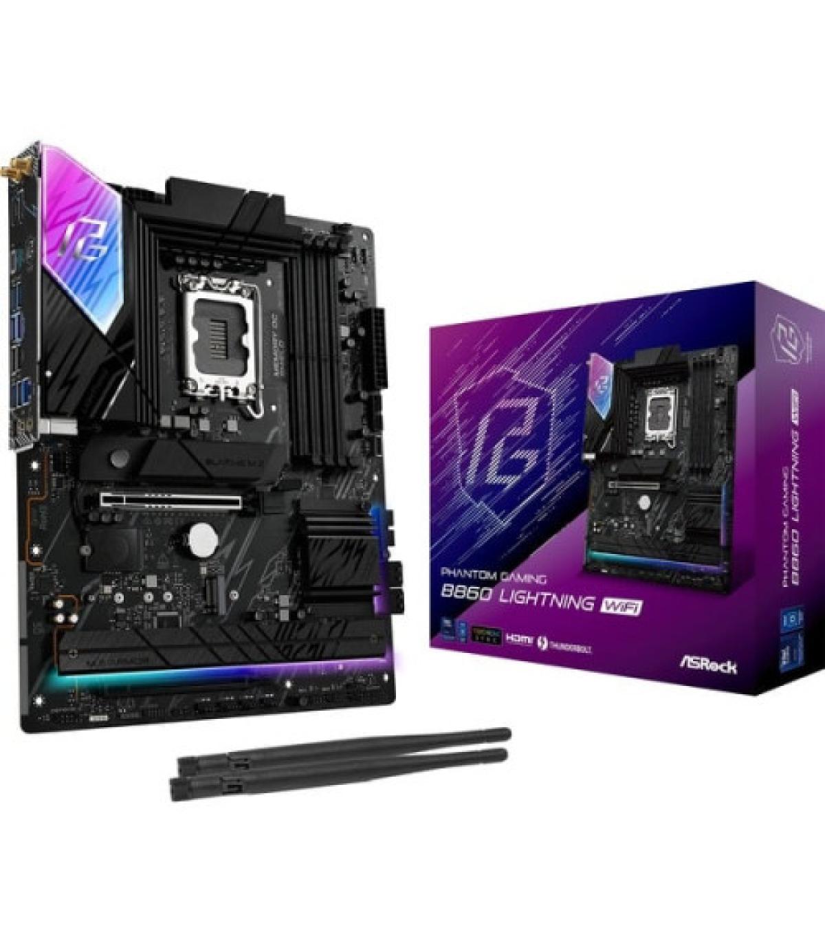PLACA ASROCK B860M LIGHTNING WIFI,INTEL,1851,B860,4DDR5,256GB,1HDMI+1DP+1THUNDERBOLT,4SATA3+3M.2,2.5GBLAN,WIFI6E+BT5.3,8USB3.2+1USB TYPE-C,ATX
