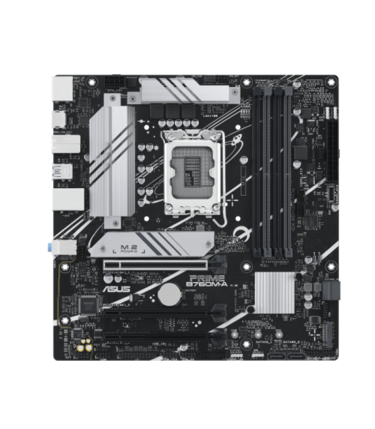 ASUS PRIME B760M-A-CSM. Fabricante de procesador: Intel, Socket de procesador: LGA 1700, Procesador compatible: Intel® Celeron®, Intel® Pentium® Gold, Intel® Core™ i3, Intel® Core™ i5, Intel® Core™.... tipos de memoria compatibles: DDR5-SDRAM, Memoria interna máxima: 128 GB, Tipo de ranuras de memoria: DIMM. Interfaces de disco de almacenamiento soportados: M.2, SATA III, Tipos de unidades de almacenamiento admitidas: HDD & SSD. Tipo de interfaz ethernet: 2.5 Gigabit Ethernet. Componente para: PC, Factor de forma: micro ATX, Familia del chipset: Intel