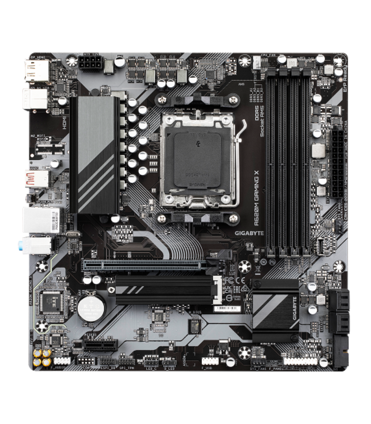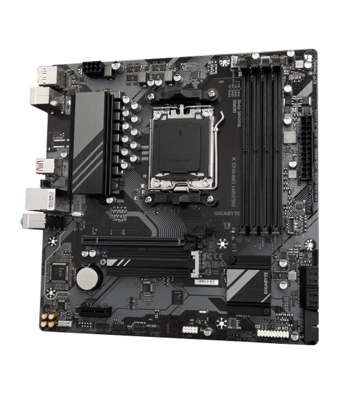 Gigabyte A620M GAMING X. Fabricante de procesador: AMD, Socket de procesador: Zócalo AM5, Procesador compatible: AMD Ryzen™ 5, AMD Ryzen 7 7th Gen, AMD Ryzen 9 7th Gen. tipos de memoria compatibles: DDR5-SDRAM, Memoria interna máxima: 192 GB, Tipo de ranuras de memoria: DIMM. Interfaces de disco de almacenamiento soportados: M.2, SATA III, Tipos de unidades de almacenamiento admitidas: HDD & SSD, Niveles RAID: 0, 1, 10. Máxima resolución: 4096 x 2160 Pixeles. Conector USB: USB tipo A, USB Tipo C