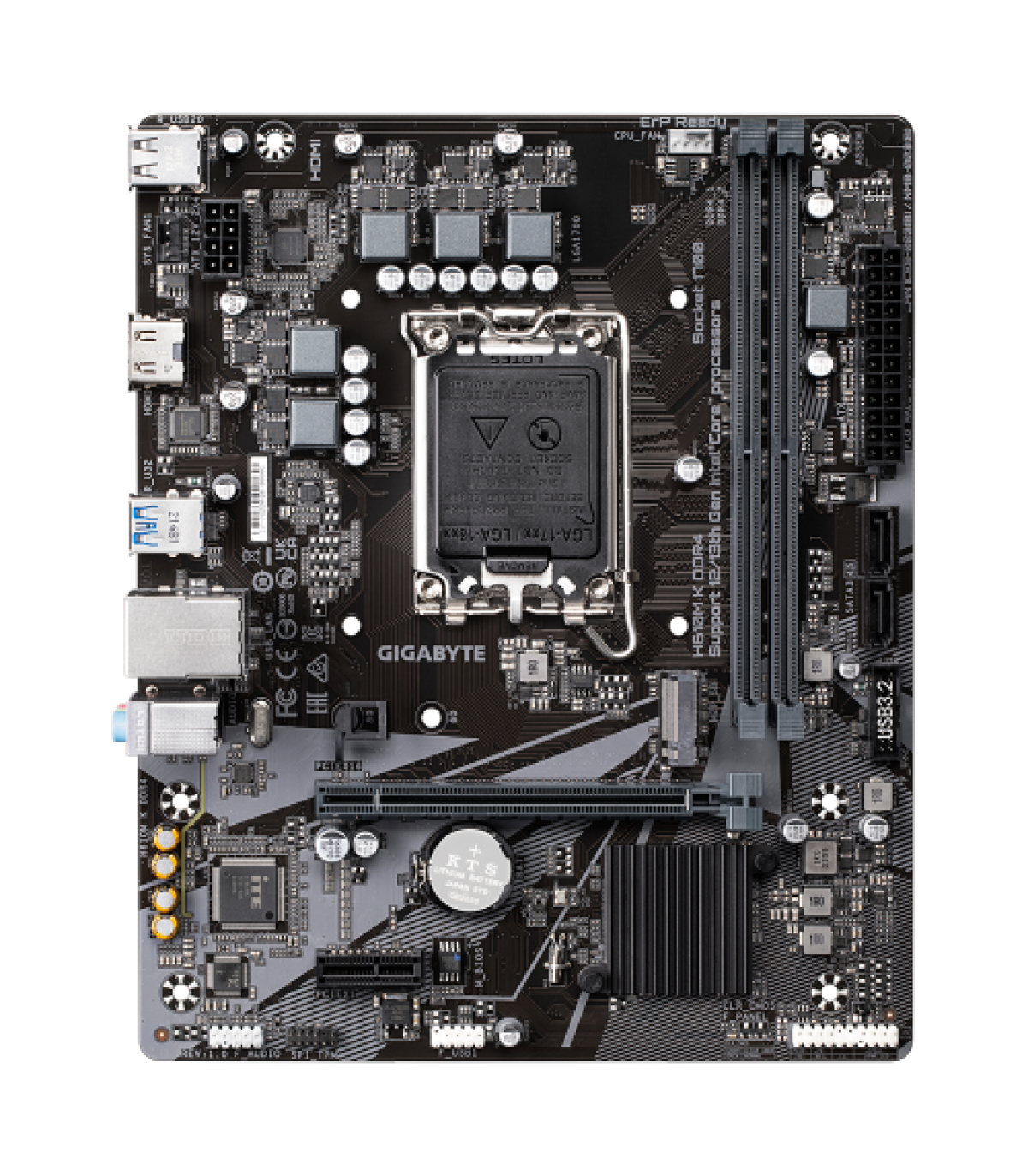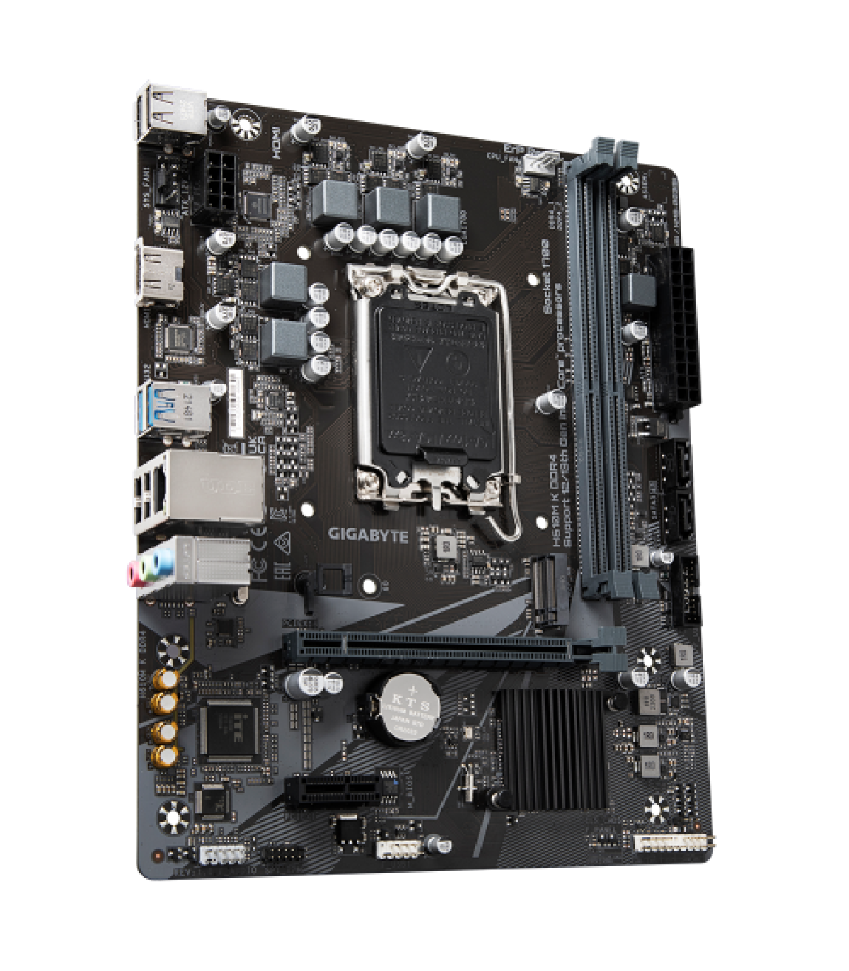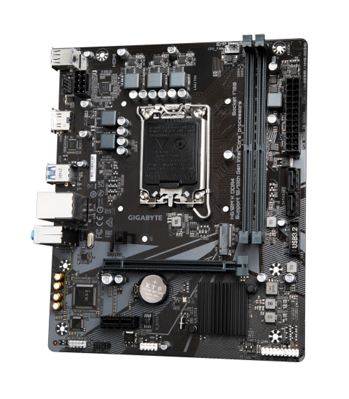 Gigabyte H610M K DDR4 1.0. Fabricante de procesador: Intel, Socket de procesador: LGA 1700, Procesador compatible: Intel® Celeron®, Intel® Core™ i3, Intel® Core™ i7, Intel® Core™ i9, Intel® Pentium® Gold. tipos de memoria compatibles: DDR4-SDRAM, Memoria interna máxima: 64 GB, Tipo de ranuras de memoria: DIMM. Interfaces de disco de almacenamiento soportados: M.2, PCI Express 3.0, SATA. Graphics chipset: Intel, Adaptador gráfico: HD Graphics, Máxima resolución: 4096 x 2160 Pixeles. Tipo de interfaz ethernet: Gigabit Ethernet