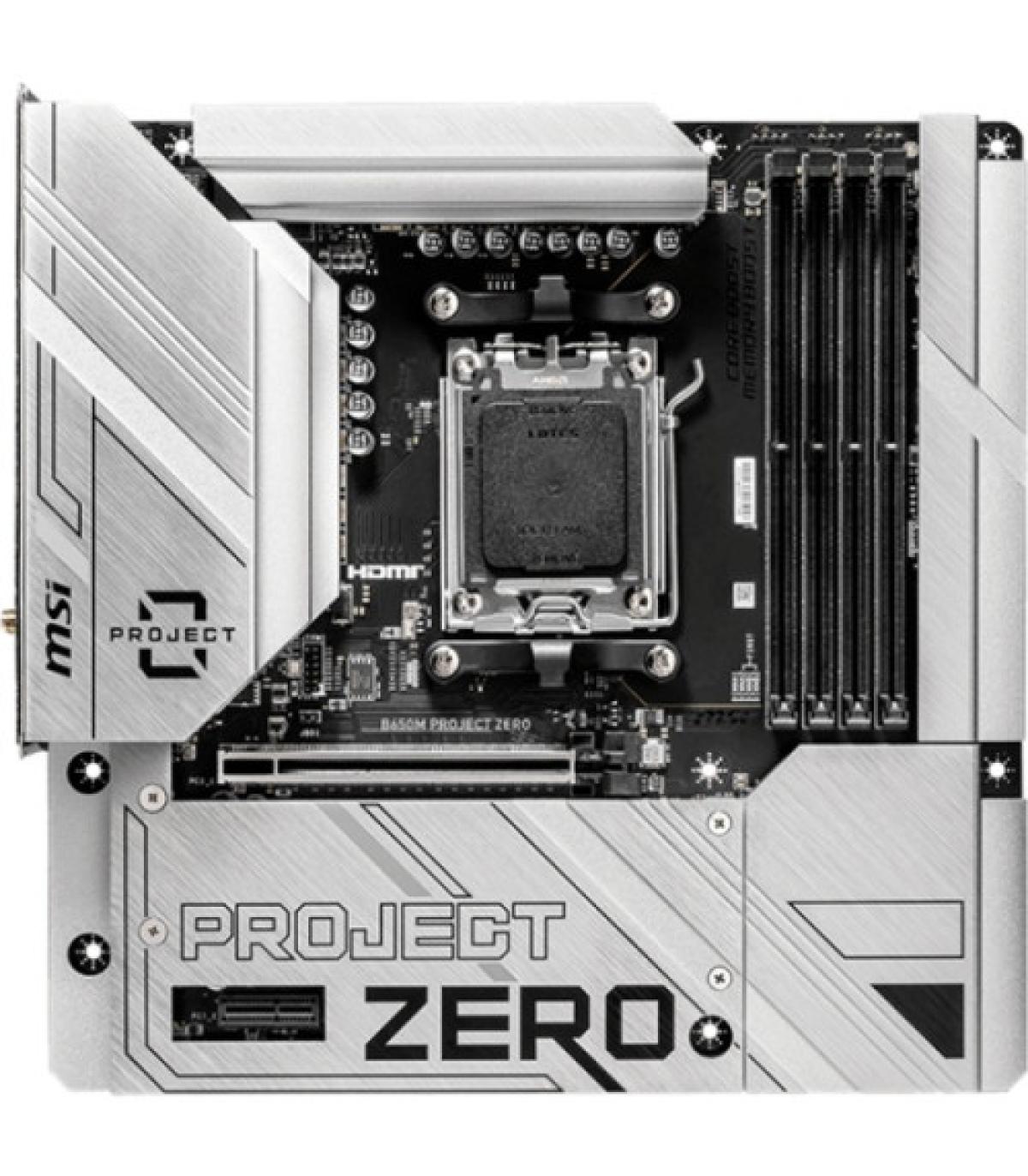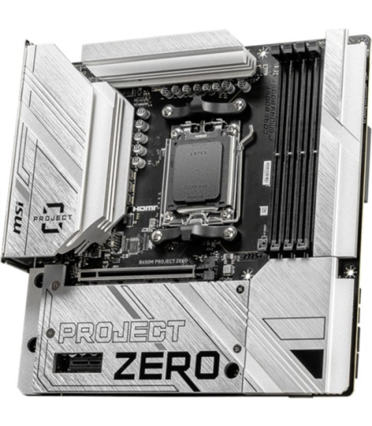 La placa base B650M PROJECT ZERO se basa en el chipset AMD B650 y es compatible con los procesadores AMD para el socket AM5. Tiene cuatro ranuras DIMM DDR5 en modo de doble canal para hasta 128 GB de memoria. Otras características del B650M PROJECT ZERO incluyen una ranura PCIe 4.0 x16 y una ranura PCIe 3.0 x1. Además, el B650M PROJECT ZERO cuenta con sonido de 8 canales, una interfaz LAN de 2,5 Gigabit, Wi-Fi6E, Bluetooth, cuatro puertos SATA3, dos puertos M.2 y varios puertos USB.