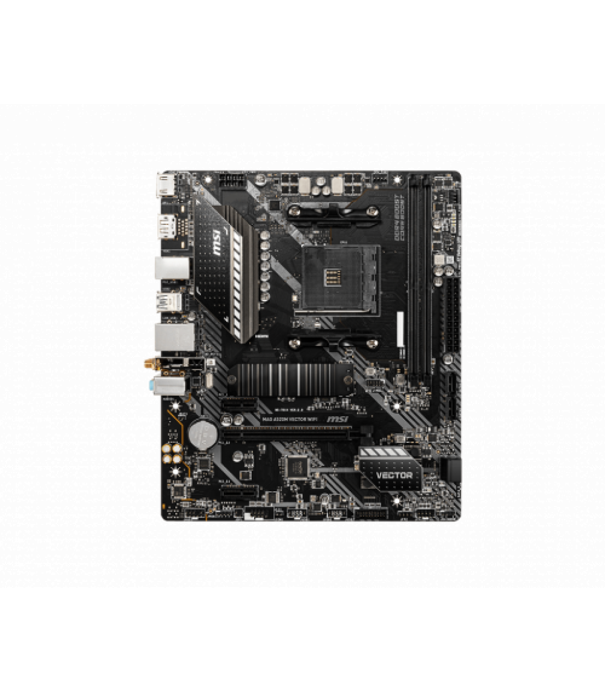 MSI MAG A520M VECTOR WIFI. Fabricante de procesador: AMD, Socket de procesador: Zócalo AM4, Procesador compatible: AMD Ryzen. tipos de memoria compatibles: DDR4-SDRAM, Tipo de ranuras de memoria: DIMM, Velocidades de reloj de memoria soportadas: 1866,2133,2400,2667,2800,2933,3000,3066,3200,3466,3600,3733,3866,4000,4133,4266,4400,4600 MHz. Interfaces de disco de almacenamiento soportados: Serial ATA III, Tipos de unidades de almacenamiento admitidas: HDD & SSD. Memoria máxima de adaptador de gráficos: 2048 MB, Máxima resolución: 4096 x 2160 Pixeles. Tipo de interfaz ethernet: Gigabit Ethernet, Controlador LAN: Realtek RTL8111H, Wi-Fi estándares: 802.11a,802.11b,802.11g,Wi-Fi 4 (802.11n),Wi-Fi 5 (802.11ac)