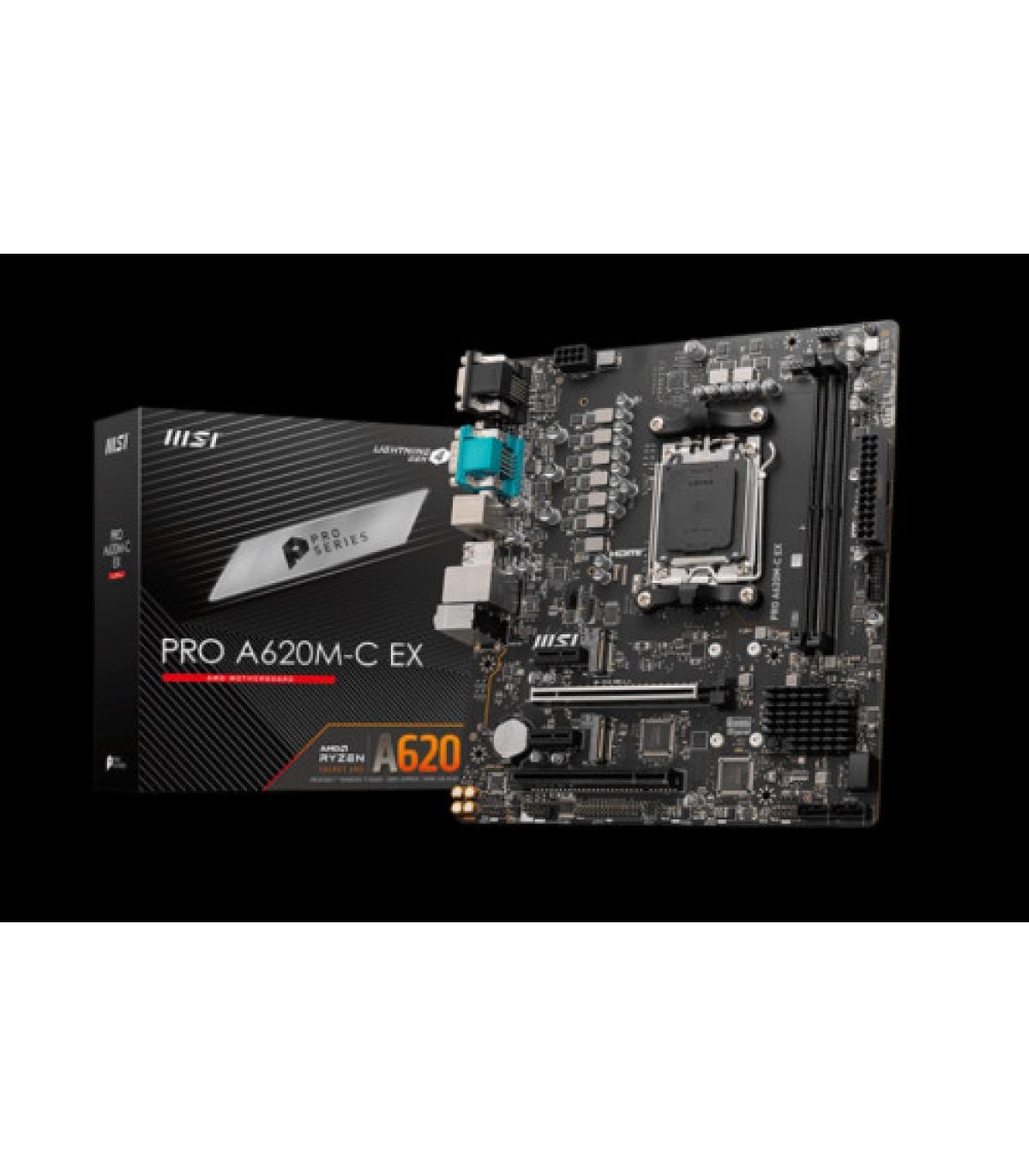 PLACA MSI PRO A620M-C EX,AMD,AM5,A620,2DDR5,128GB,VGA+DVI+HDMI+DP,GBLAN,4SATA6.0+2XM.2,4USB3.2+1USB3.2 TYPE-C,MATX.