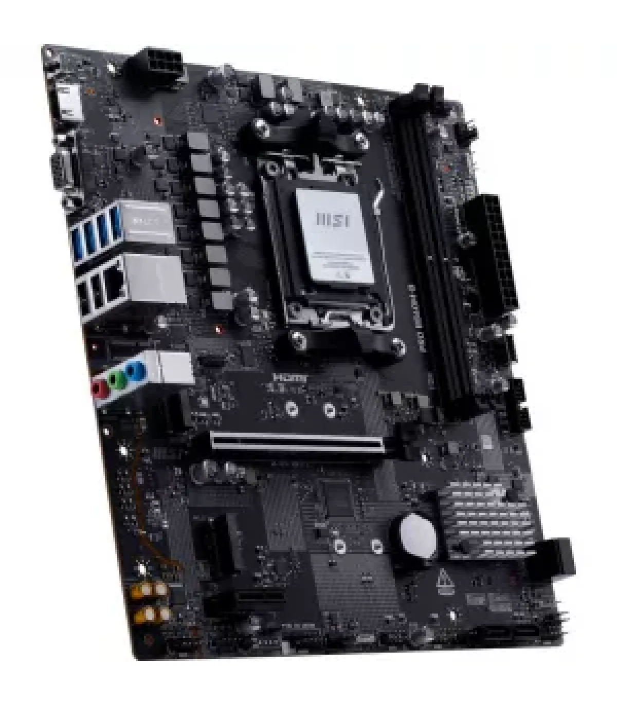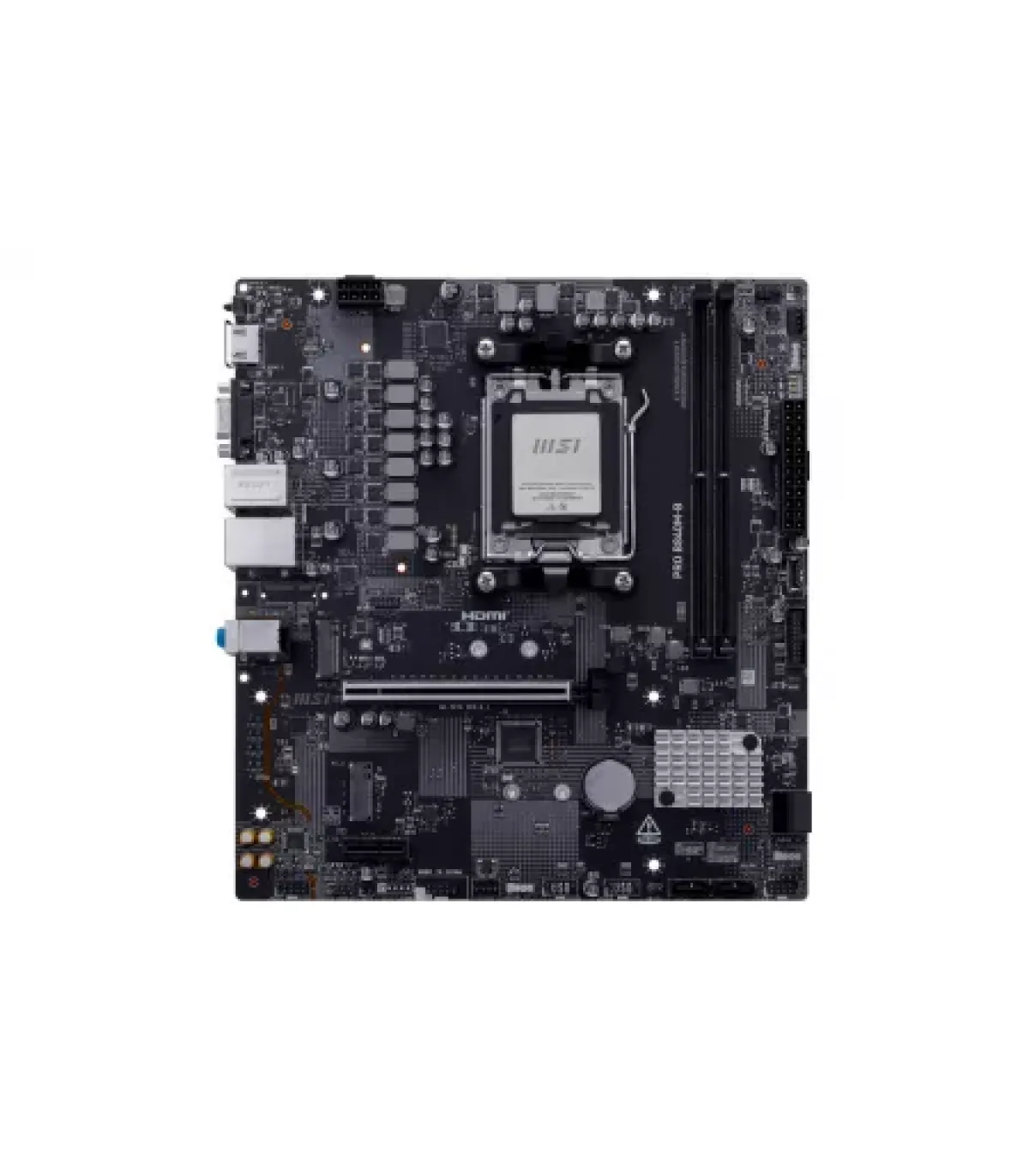 La MSI PRO B840M-B integra el chipset AMD B840 y socket AM5, compatible con procesadores Ryzen series 7000, 8000 y 9000. Ofrece soporte para DDR5 en doble canal con 2 DIMM hasta 8000+ MT/s (OC). Cuenta con 2 puertos M.2 PCIe Gen4 x4 y 4 SATA III. Dispone de una ranura PCIe 4.0 x16 y otra PCIe 3.0 x1. Integra LAN 2.5 GbE Realtek 8125 y audio 7.1 HD con Audio Boost. Salidas de vídeo HDMI 2.1 y VGA mediante APU. Ideal para entornos profesionales o de productividad. USB traseros: 7 (6x USB 5Gbps Type-A, 1x USB 5Gbps Type-C) USB frontales: 6x USB 2.0