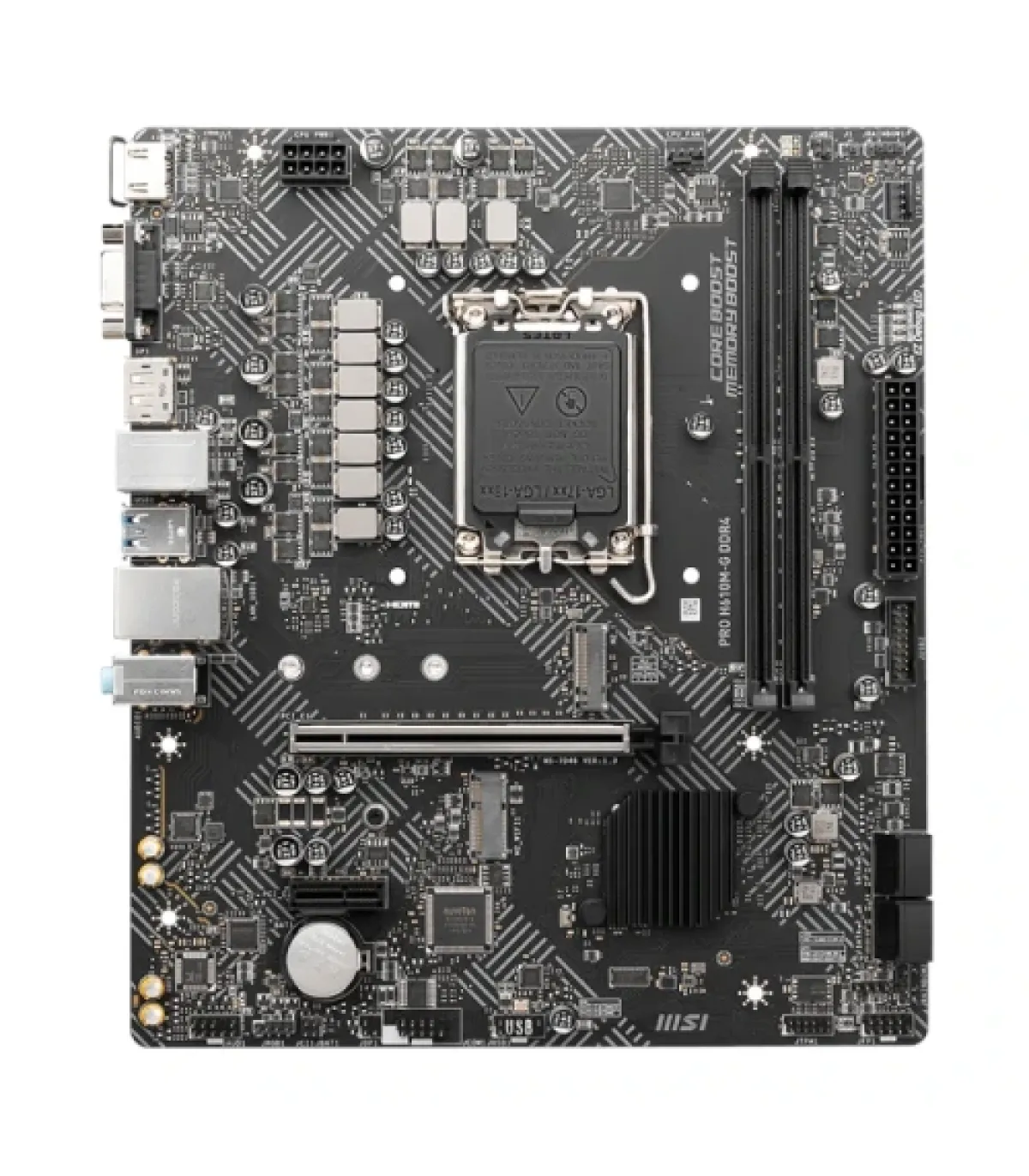 PLACA MSI PRO H610M-G,INTEL,1700,H610,2DDR5,96GB,VGA+HDMI+DP,4SATA3+1M.2,2USB2.0,2USB3.2,USB-C,1GBLAN,MATX.