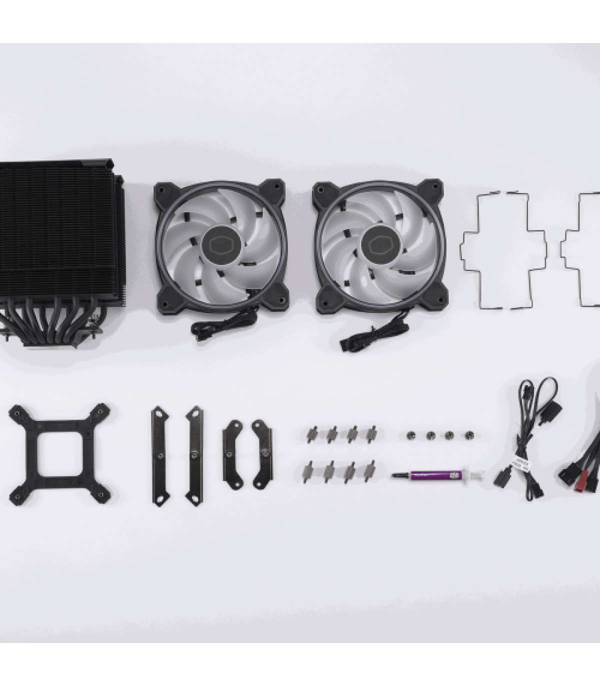 Cooler Master Hyper 622 Halo Black. Tipo: Refrigerador de aire, Diámetro de ventilador: 12 cm, Velocidad de rotación (mín.): 650 RPM, Velocidad de rotación (máx.): 2050 RPM, Nivel de ruido (alta velocidad): 27 dB, Máximo flujo de aire: 51,88 cfm, Presión máxima de aire: 2,89 mmH2O, Tipo de soporte: Rodamiento tipo rifle. Ancho: 137 mm, Profundidad: 125 mm, Altura: 157 mm. Color del producto: Negro