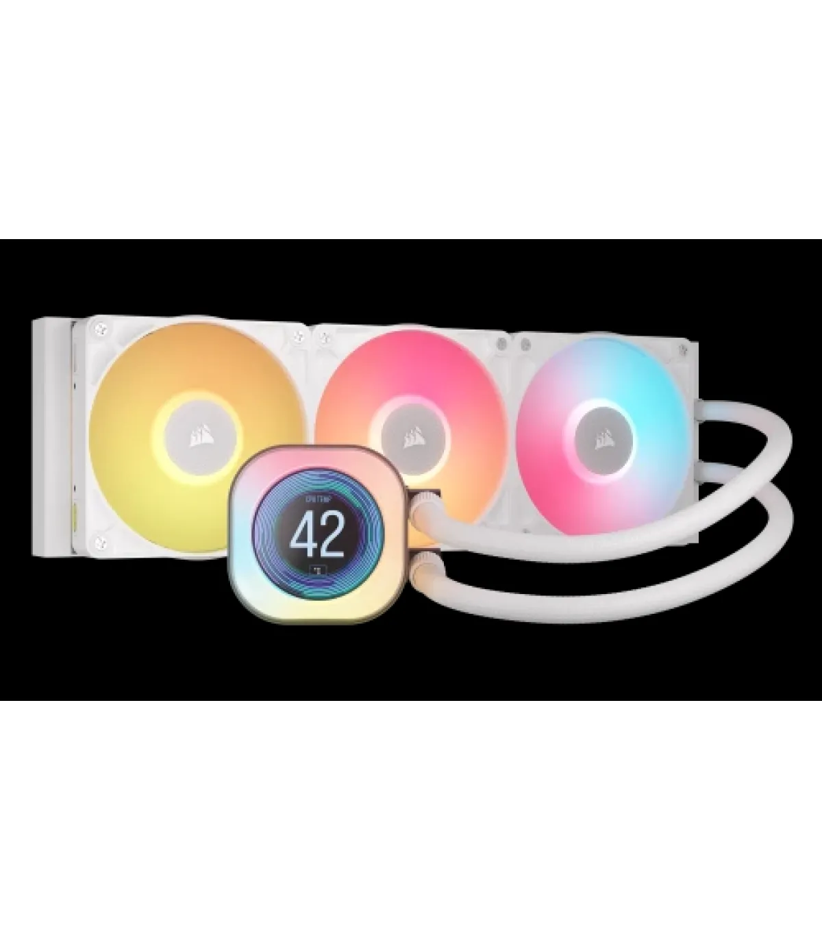 Refrigeración líquida de CPU iCUE LINK TITAN 240 RX LCD, blancoEl CORSAIR iCUE LINK TITAN RX LCD ofrece una refrigeración ultrasilenciosa de alto rendimiento con rendimiento térmico y conectividad iCUE LINK optimizados, además de iluminación RGB dinámica.La pantalla LCD personalizable muestra temperaturas del sistema, imágenes y GIF animadosMotor de refrigeración FlowDrive con motor trifásico para una máxima eficiencia térmicaDos ventiladores RX120 RGB de alto rendimientoCompatibilidad total con los zócalos Intel LGA 1851 y AMD AM544 LED RGB direccionables individualmente en la bomba y la tapa, más 8 adicionales en cada ventilador