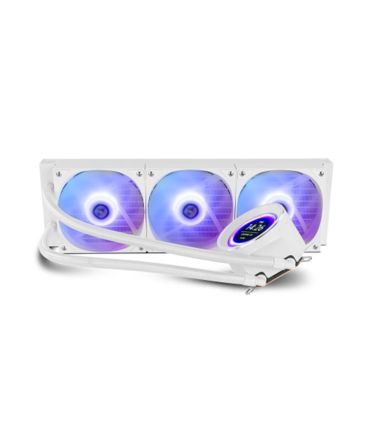Hummer X-360 LCD es un kit de refrigeración líquida all in one fácil de instalar que ofrece un alto rendimiento con una baja sonoridad. Gracias a su radiador triple (397 x 120 x 27 mm) y sus ventiladores con función PWM que mantienen de manera eficaz la temperatura del ordenador. Además, incluye una pantalla LCD personalizable, que podrás configurar según los datos que necesites saber de tu configuración.
