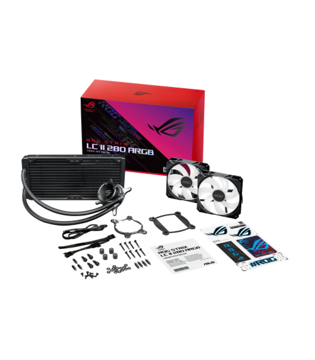 ASUS ROG STRIX LC II 280 ARGB. Tipo: Sistema de refrigeración líquida todo en uno, Diámetro de ventilador: 14 cm. Ancho: 30 mm, Profundidad: 143 mm, Altura: 315 mm. Color del producto: Negro