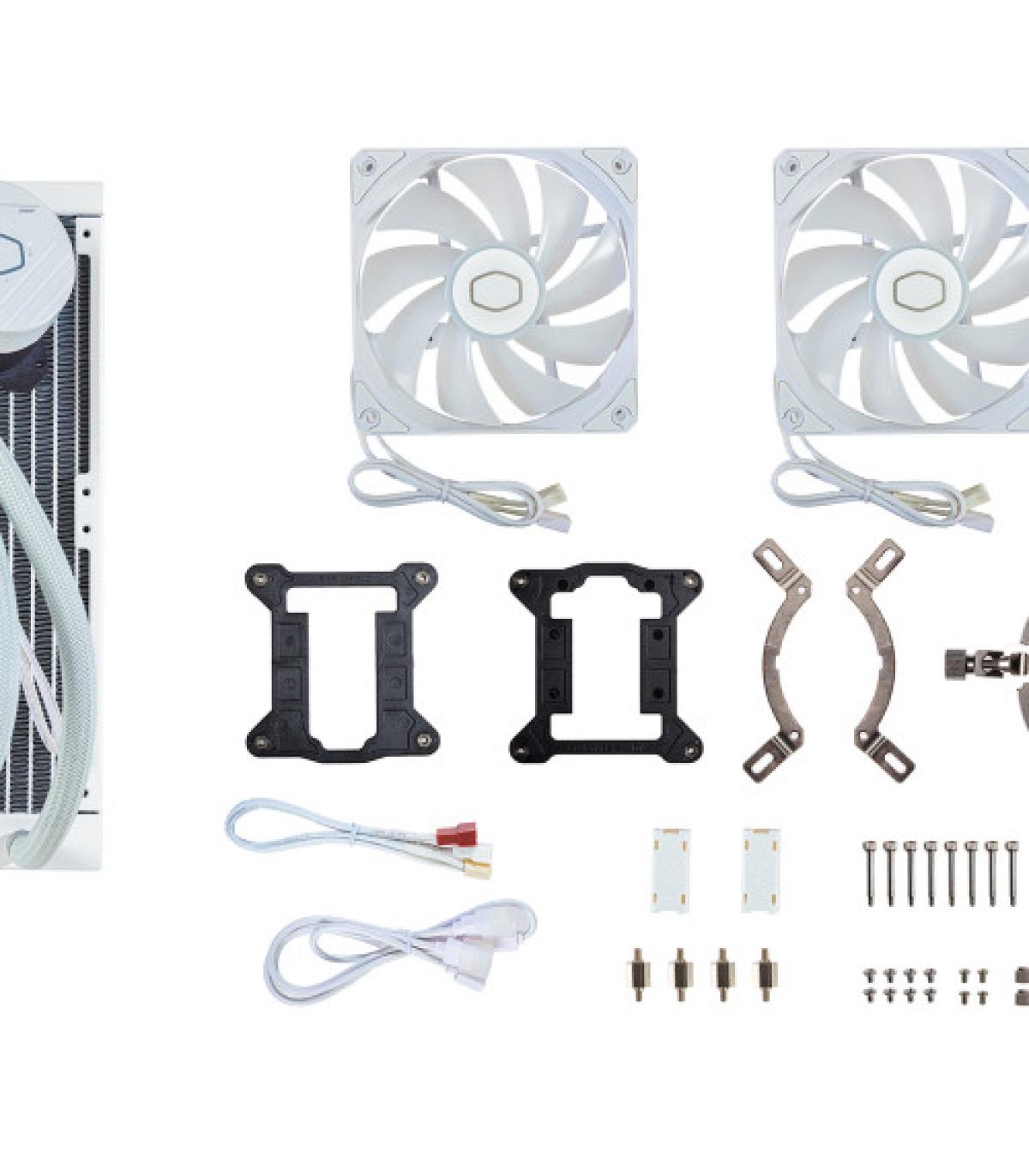 Cooler Master MasterLiquid 240L Core ARGB White. Tipo: Kit de refrigeración líquida, Diámetro de ventilador: 12 cm, Velocidad de rotación (mín.): 650 RPM, Velocidad de rotación (máx.): 1750 RPM, Nivel de ruido (alta velocidad): 27,2 dB, Máximo flujo de aire: 71,93 cfm, Presión máxima de aire: 1,86 mmH2O, Tipo de soporte: Rodamiento tipo rifle. Color del producto: Blanco