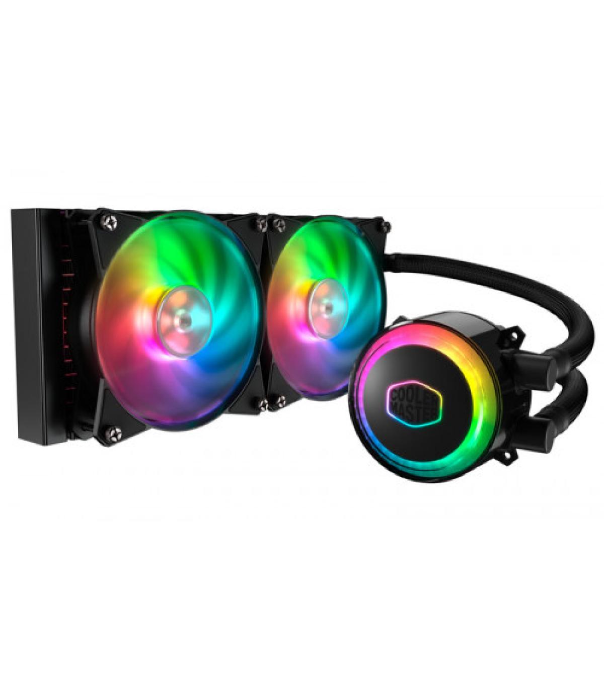Cooler Master MASTERLIQUID ML240R RGB. Utilizar con: Procesador, Nivel de ruido del ventilador (mín.): 6 dB, Nivel de ruido del ventilador (máx.): 30 dB. Voltaje de bomba: 12 V, Voltaje del ventilador: 12 V. Material de radiador: Aluminio, Iluminación de color: Multi, Color del producto: Negro. Peso: 1,14 kg, Dimensiones del ventilador (A x A x P): 120 x 120 x 25 mm, Ancho de radiador: 12 cm. Ancho del paquete: 280 mm, Profundidad del paquete: 327 mm, Altura del paquete: 141 mm