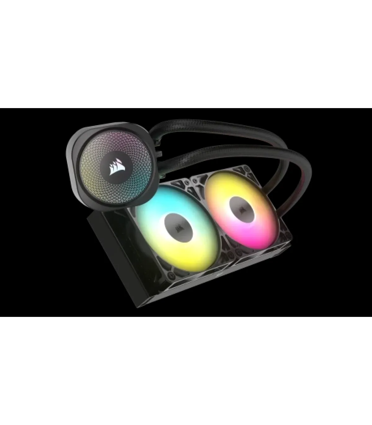 Corsair NAUTILUS 240 RS ARGB Liquid. Tipo: Refrigerador de aire, Velocidad de rotación (máx.): 2100 RPM, Nivel de ruido (alta velocidad): 34 dB, Máximo flujo de aire: 74,37 cfm, Presión máxima de aire: 4,91 mmH2O. Ancho: 125 mm, Profundidad: 275 mm, Altura: 125 mm. Color del producto: Negro